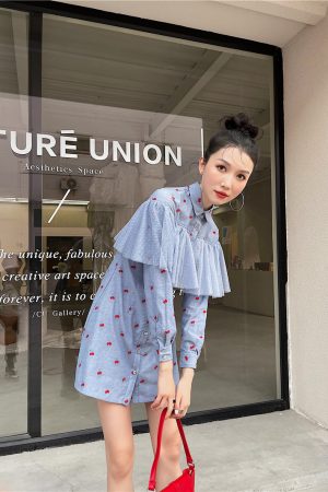 Female Dress Long Sleeve Blue Shirt Dress