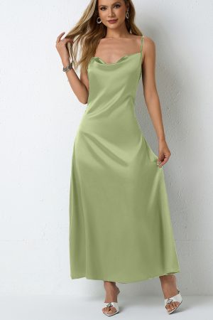 Female Casual Versatile Solid Color Satin Dress Women Pleated Sleeveless