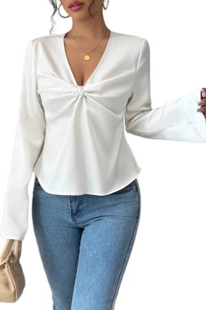 French Niche Design Twisted Satin Texture Shirt