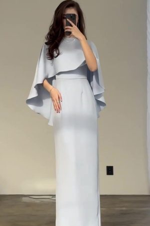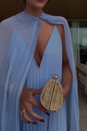 Light Blue Pleated Maxi Dress & Cape Two-piece Set