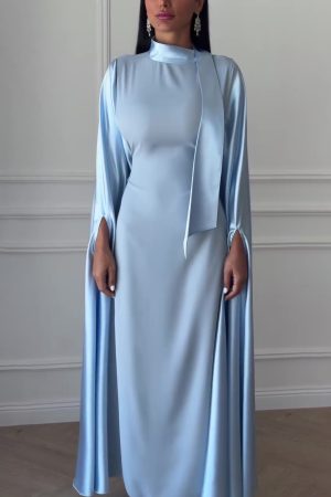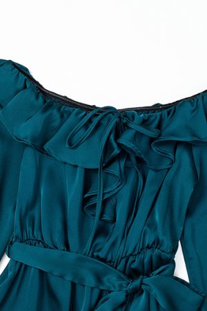 Blue and green satin ruffled collar dress