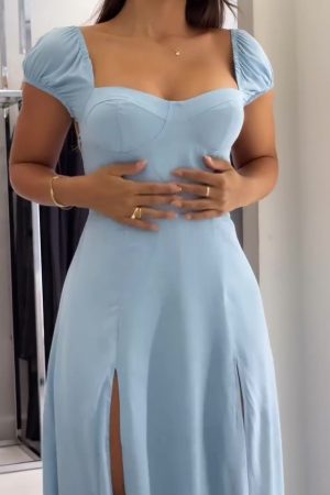 Blue Bucket Seam Maxi Dress