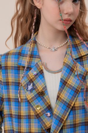 Blue And Yellow Checks Casual Suit Jacket Women