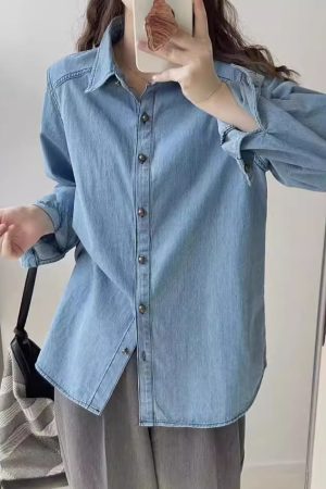 Blue Denim Shirt Jacket Women’s Small Long-sleeved Top