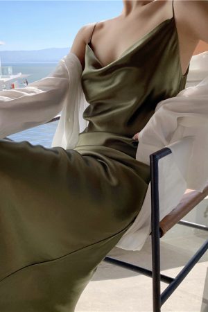 Sleek Acetate Satin Swing Neck Slip Dress