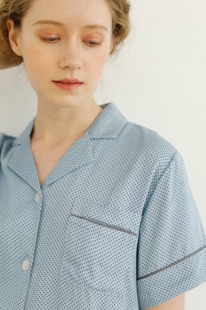 Women’s Lapel Satin Draping Heavy Blue Shirt
