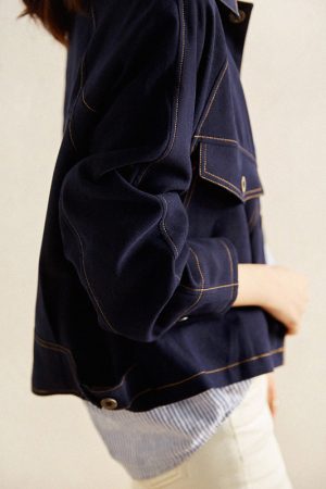 Women’s Short Dark Blue Denim Jacket Loose Casual Top