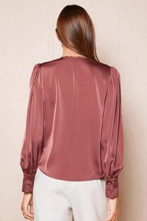 Women’s New Casual Satin Button V-neck Long Sleeve Top