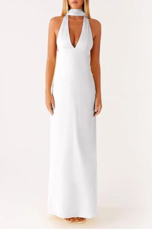 Womens Designer Dress Solid Color Sexy Backless Slip Dress
