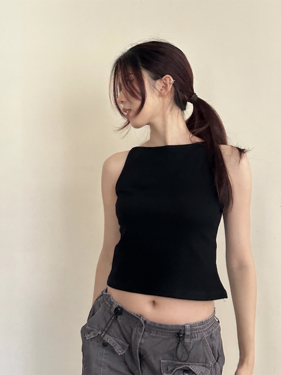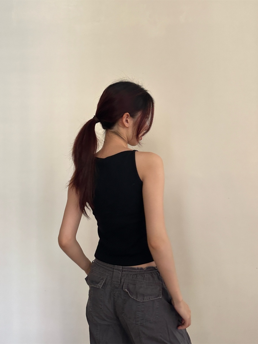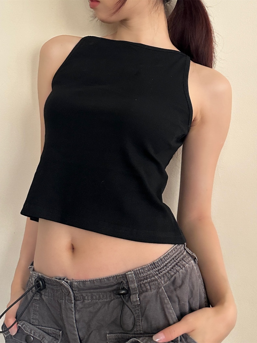 Ummer Vintage Solid Black Sleeveless Tank Top Thin Straps Y2k – Y2k Outfits