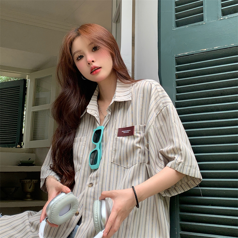 Ummer Striped Short Sleeve Shirt Women Casual Blo, Loose Top Student – Casual Outfits
