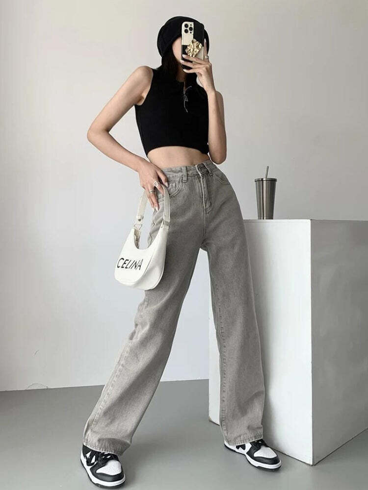 Acubi Straight Leg Gray Jeans High-quality product featuring outfit inspo, outfit inspo fall, leather pants outfit winter and more. Modern design that fits the latest trends. Premium materials ensure durability and comfort. Order now for special offers! Product designed with attention to every detail. Suitable for all occasions and personal styles.