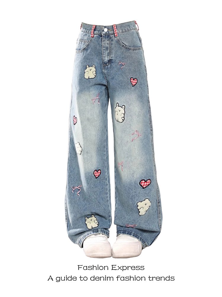 Retro Cartoon Heart Embroidery Wide Leg Denim Pants Women Casual Loose Fit Straight Leg Spring High-quality product featuring spring outfits, easy costumes women, fashion outfits and more. Modern design that fits the latest trends. Premium materials ensure durability and comfort. Order now for special offers! Product designed with attention to every detail. Suitable for all occasions and personal styles.