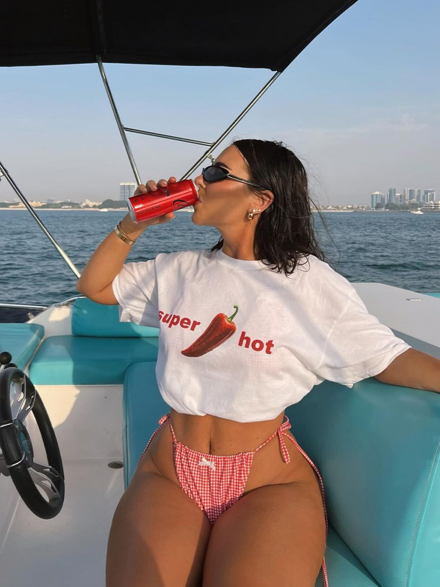 Retro Chili Print Oversized Short Sleeve Women, Pure Cotton Top, Y2k – Y2k Outfits
