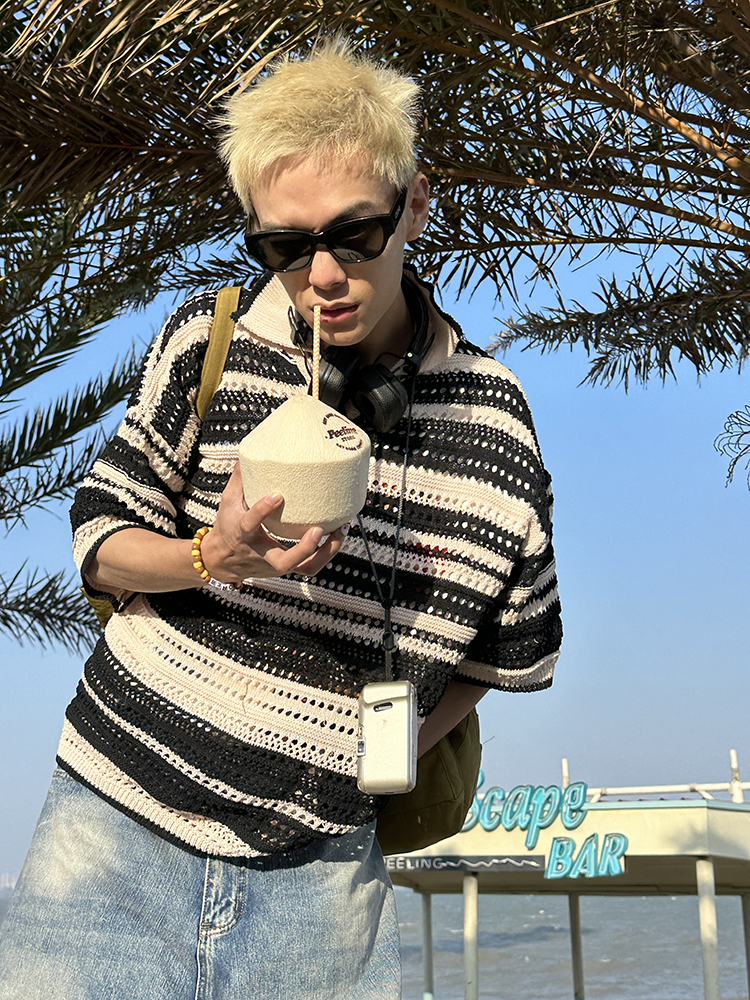 Retro Striped Hollow Kni Spring Summer Loose Casual Lapel Top – Summer Fits