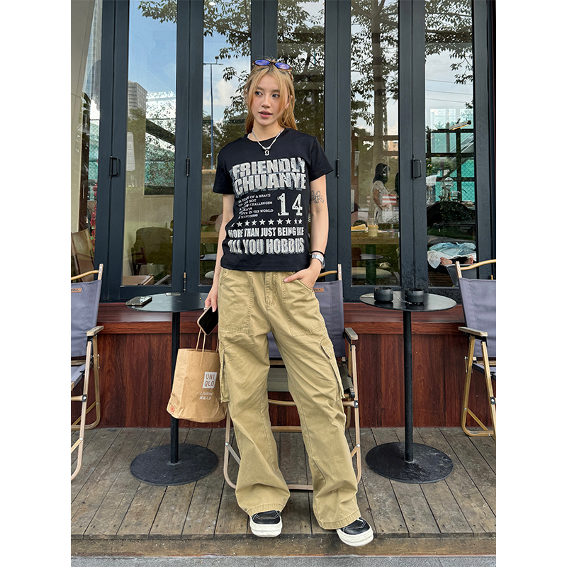Elevate your summer wardrobe with our American Retro Distressed Printed Shoulder Short Sleeve Women’s T-Shirt. This casual yet stylish top features a relaxed fit and Y2K-inspired graphic design, perfect for those warm days when comfort meets fashion. Crafted from soft, breathable fabric, it ensures all-day ease while making a bold statement. Don’t miss out on this essential addition to your closet add it to your cart today!