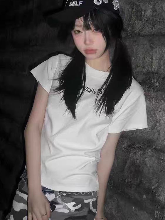 Embrace your playful side with our Kitty Cat Print White Short Sleeve T-Shirt for Women! This trendy summer top features a slim fit that flatters your silhouette, making it perfect for casual outings or cozy days at home. The whimsical cat design adds a fun touch to your wardrobe, while the breathable fabric ensures comfort in warm weather. Don’t miss out on this Y2K-inspired staple add it to your cart today and step out in style!