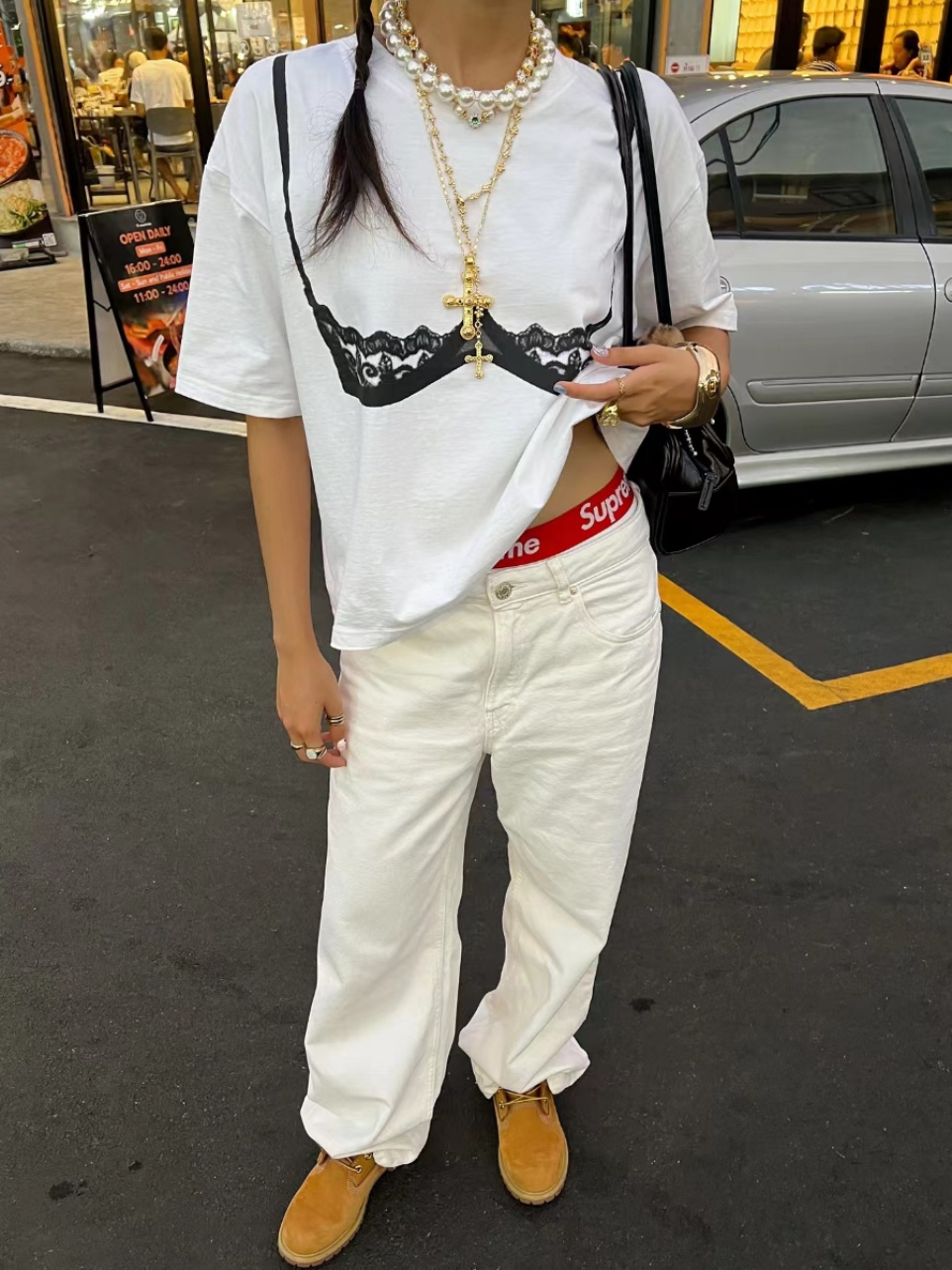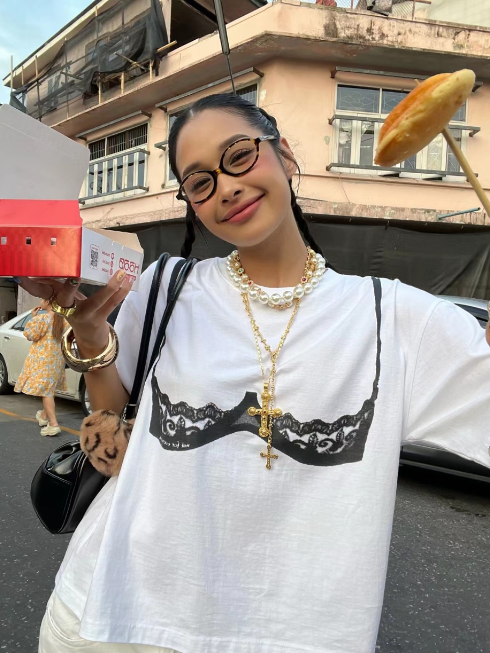 Retro Lace Corset Short Sleeve Women Oversized Top Print – Coquette Outfit