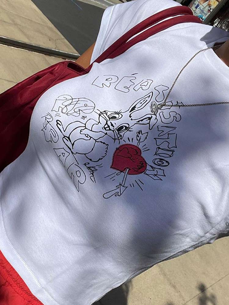 Retro Rabbit Graphic White Short Sleeve Crop Women Summer Y2K ABG Girl Top High-quality product featuring vacation outfits, spring outfit, summer fits and more. Modern design that fits the latest trends. Premium materials ensure durability and comfort. Order now for special offers! Product designed with attention to every detail. Suitable for all occasions and personal styles.
