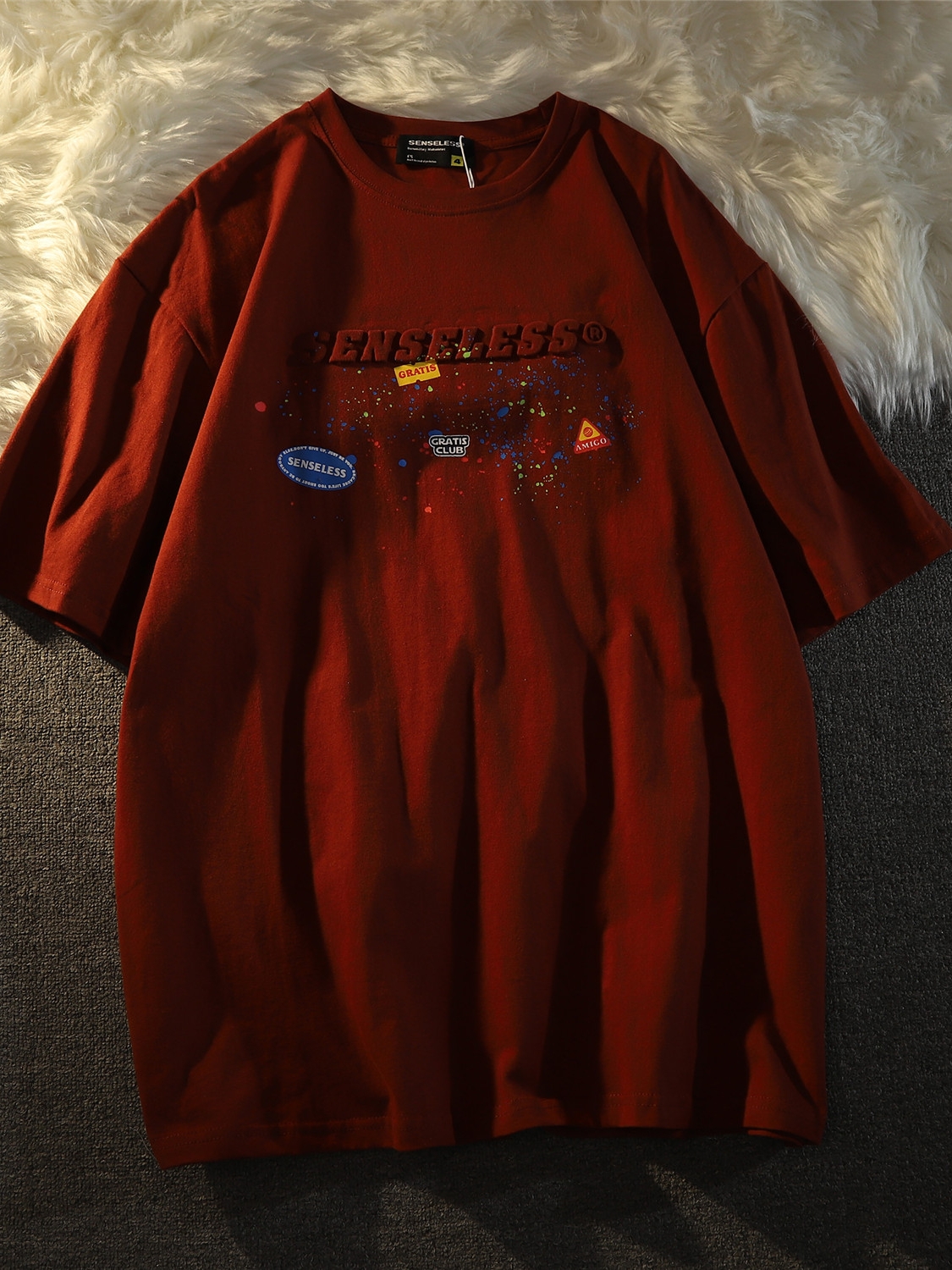 Retro Splatter Letter Pure Cotton Short Sleeve Men, Women, Plus Size, Loose Fit, Unisex Casual Wear High-quality product featuring casual outfits, simple halloween costume, 90s fashion and more. Modern design that fits the latest trends. Premium materials ensure durability and comfort. Order now for special offers! Product designed with attention to every detail. Suitable for all occasions and personal styles.
