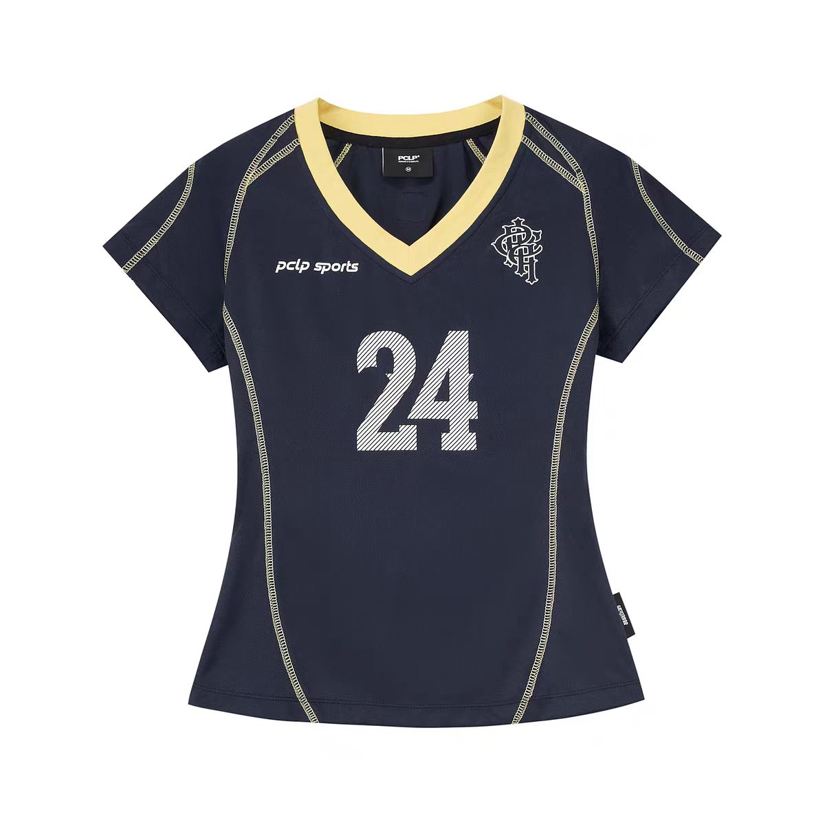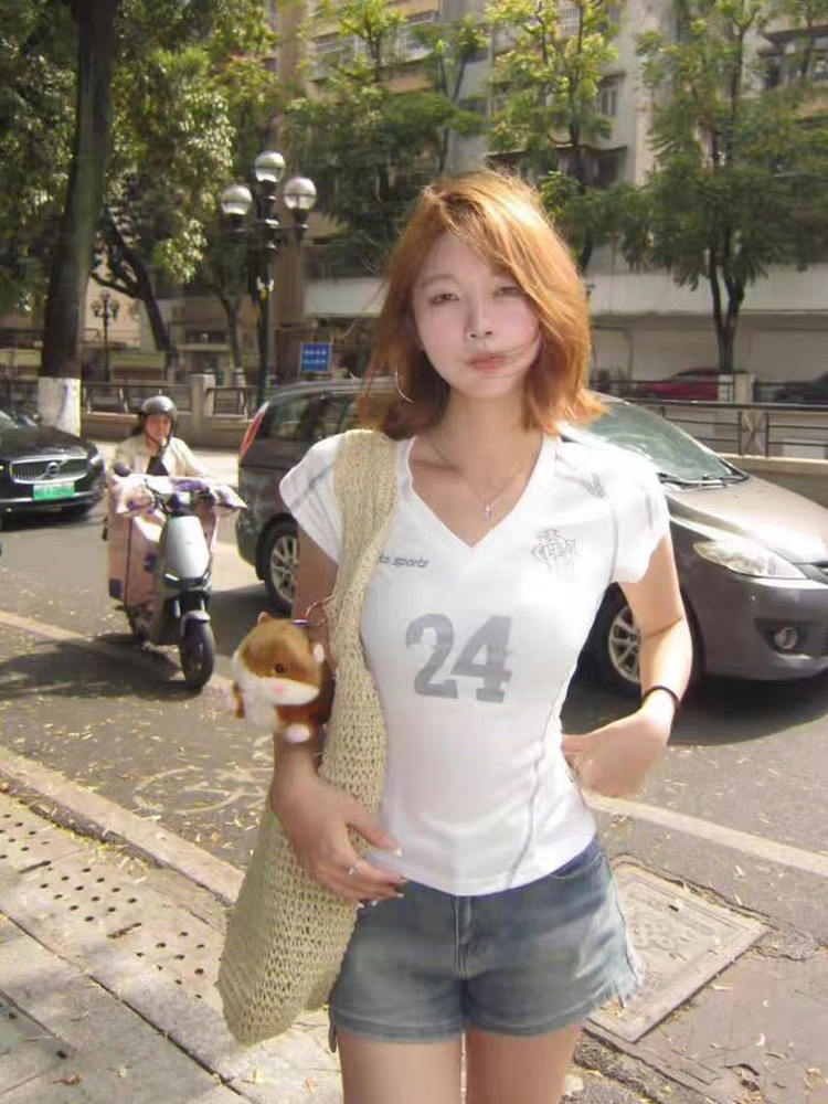 Retro V- Neck Shoulder Women, Summer Print, Sporty Short Sleeves, Slim – Y2k Outfits