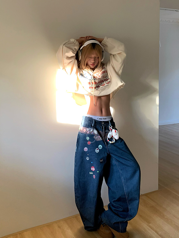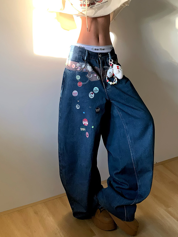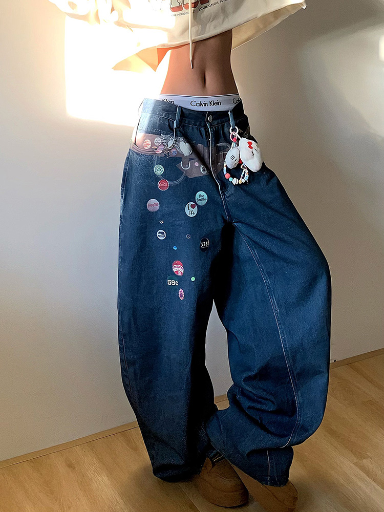 Step into the spotlight with our American Style Fun Badge Printed Denim Pants, designed for both men and women who embrace the bold spirit of 90s Y2K fashion. These loose wide-leg straight trousers offer ultimate comfort and a relaxed fit, making them perfect for any casual outing or laid-back day. Featuring unique badge prints, these jeans are a stylish statement piece that effortlessly elevates your wardrobe. Don’t miss out on this trendy essential add to your cart today!