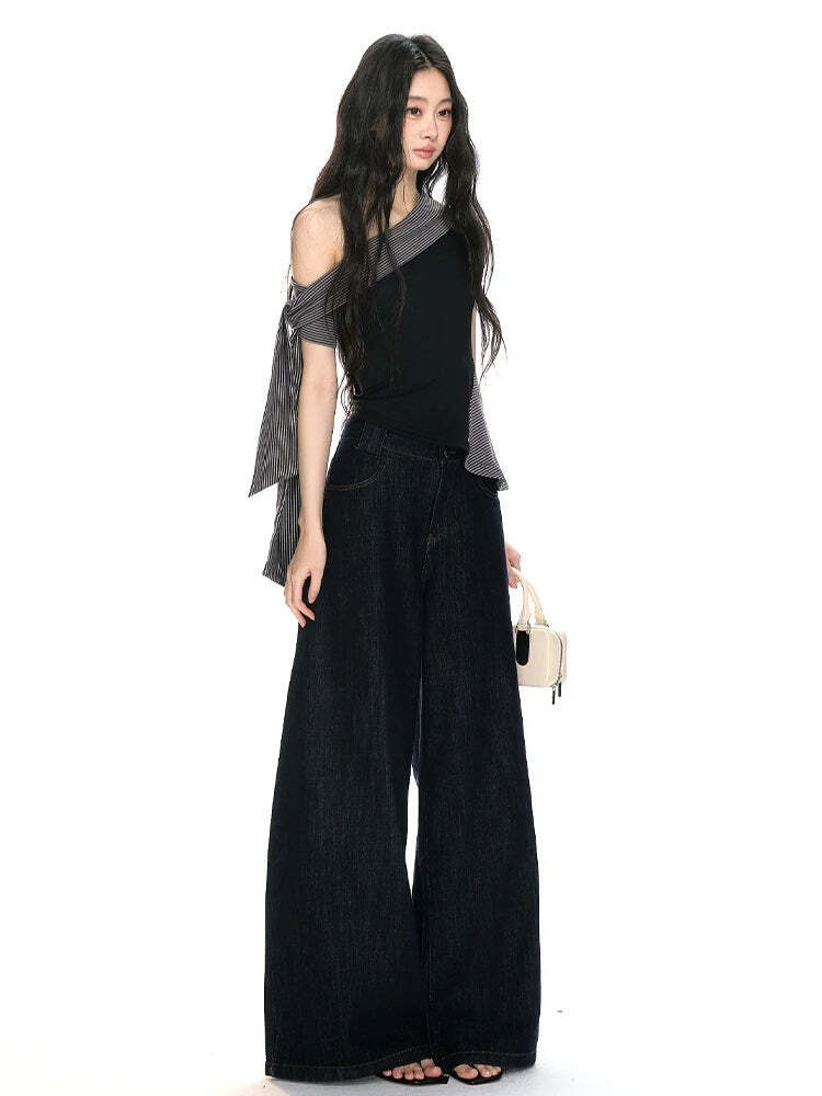 Bold and sculpted, this asymmetrical top pairs a sleek fit with a wrap-style shoulder tie. The soft knit texture hugs your shape while the striped accent adds contrast. A low-effort flex for going-out nights or fashion-forward street looks.