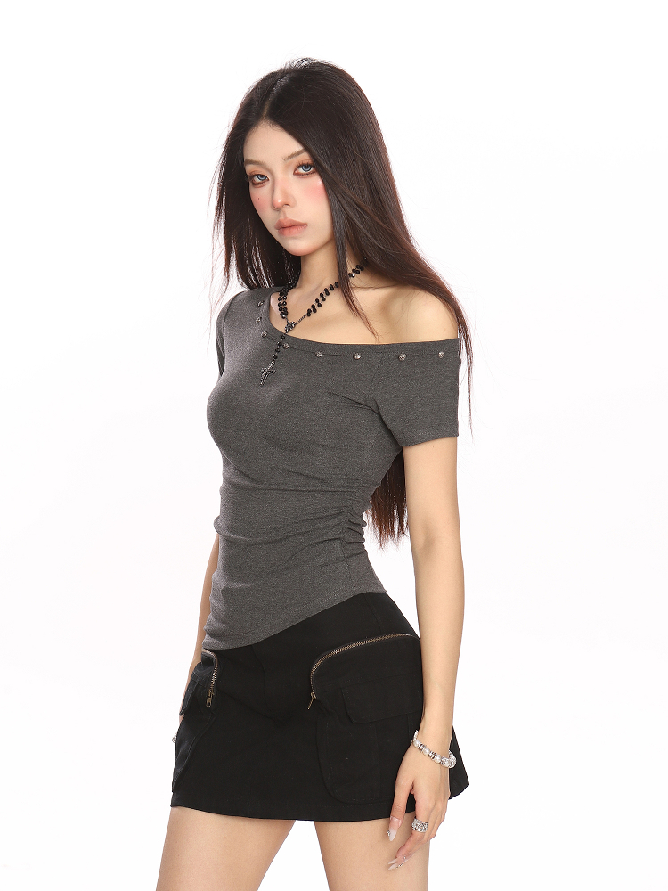 Shoulder Studded Short Sleeve Women Slim Fit Off Shoulder Top Summer – Summer Fits