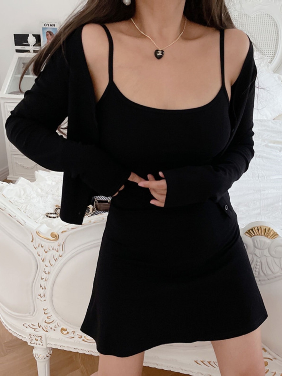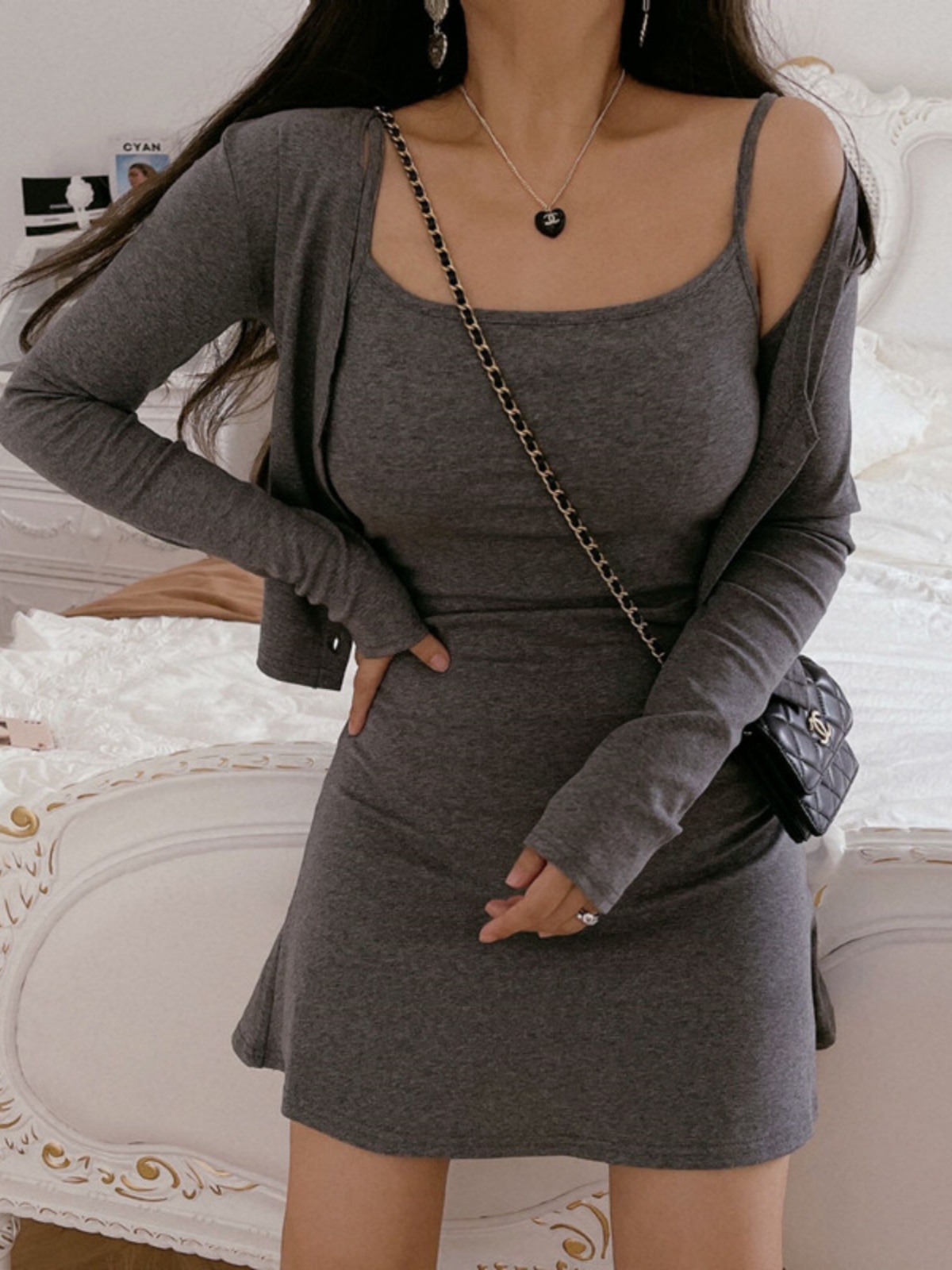 Autumn Winter Retro Bodycon a Line Camisole Dress, Cardigan Two Set Ch – Fall Fashion