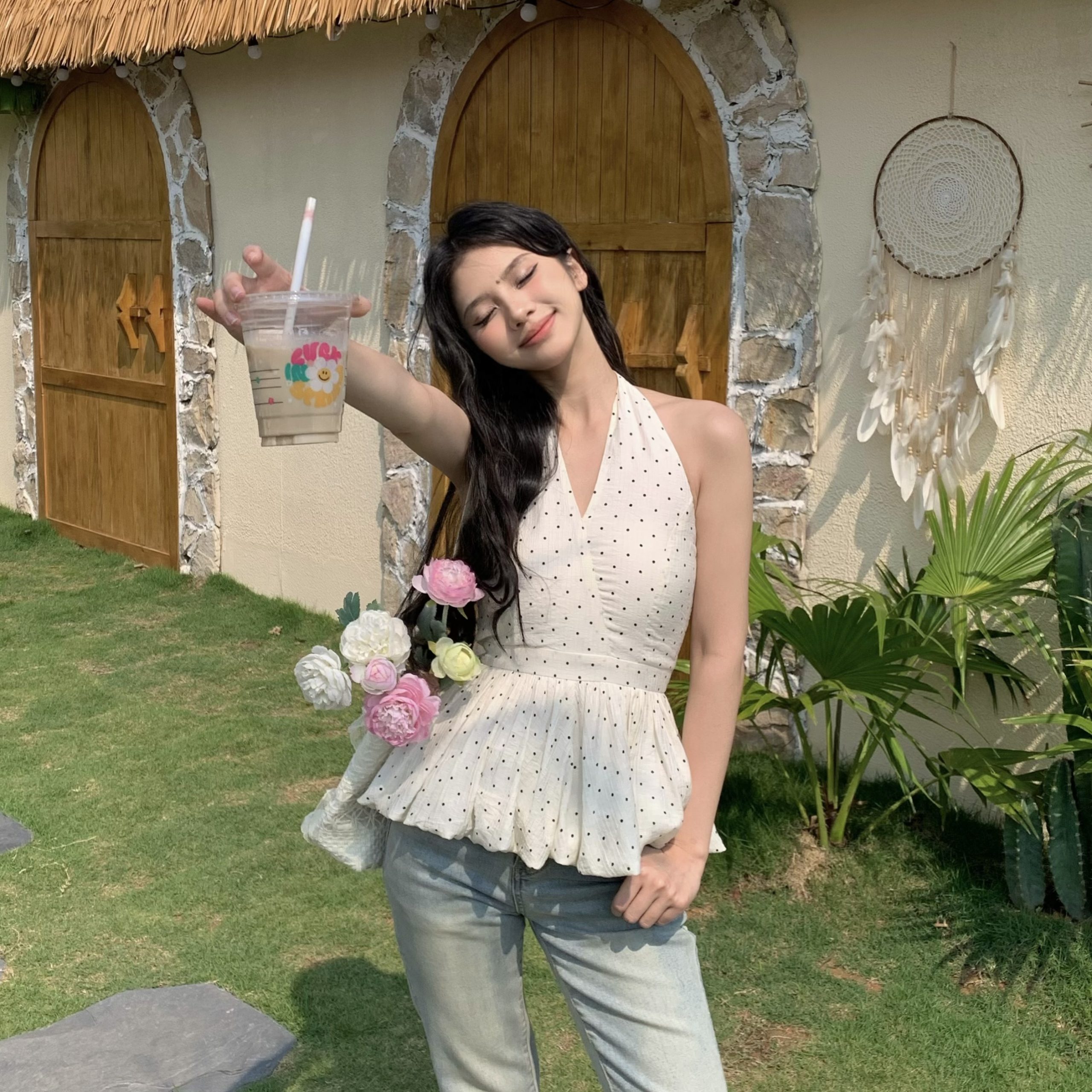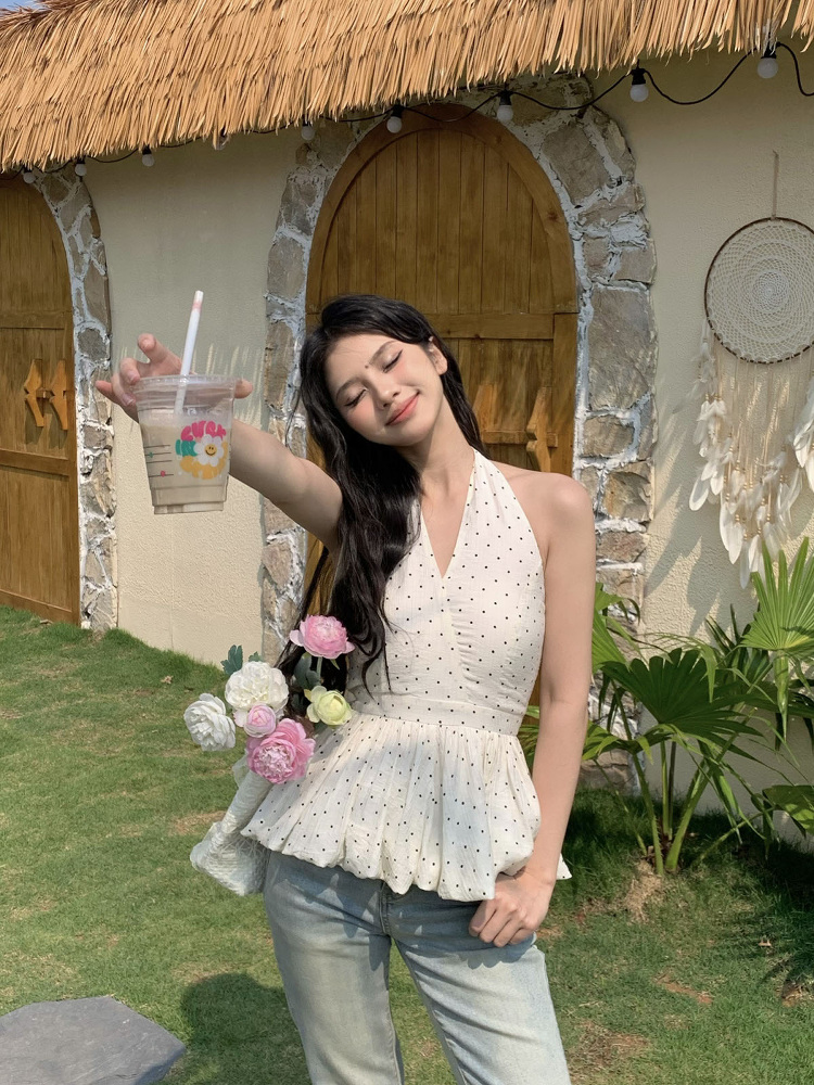 Backless Polka Dot Halter Top Women Slim Fit Sleeveless Summer Shirt High-quality product featuring casual summer outfits, easy halloween costume, vacation outfits and more. Modern design that fits the latest trends. Premium materials ensure durability and comfort. Order now for special offers! Product designed with attention to every detail. Suitable for all occasions and personal styles.