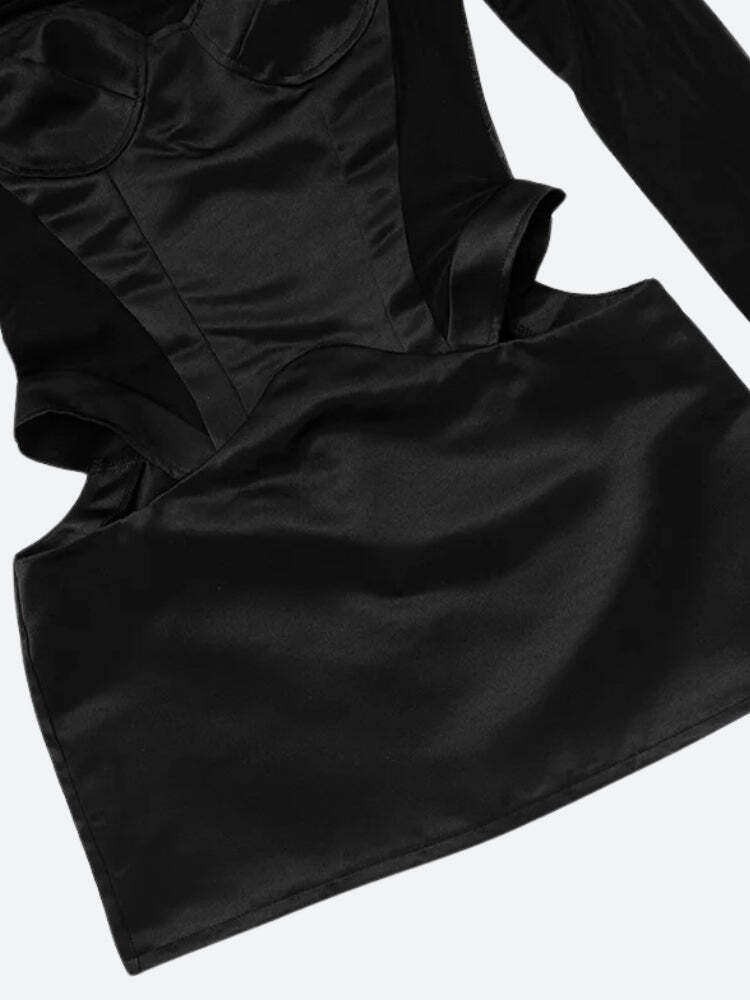 Sheer drama. Major attitude. This sultry mini dress is made to break necks. With bold cut-outs at the waist, a structured bustier bodice, and mesh paneling that hugs in all the right places, it’s pure nightlife energy. Your go-to for club nights, birthday slays, or any moment you want to be unforgettable.
