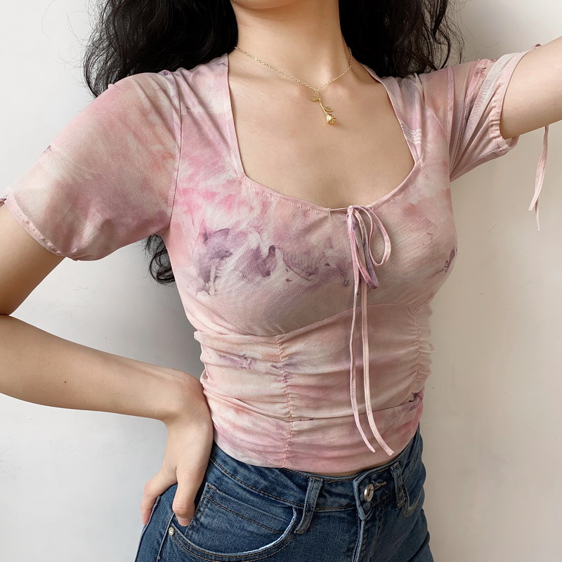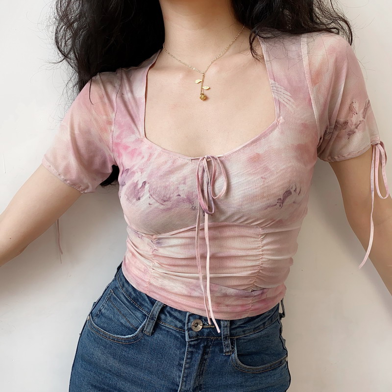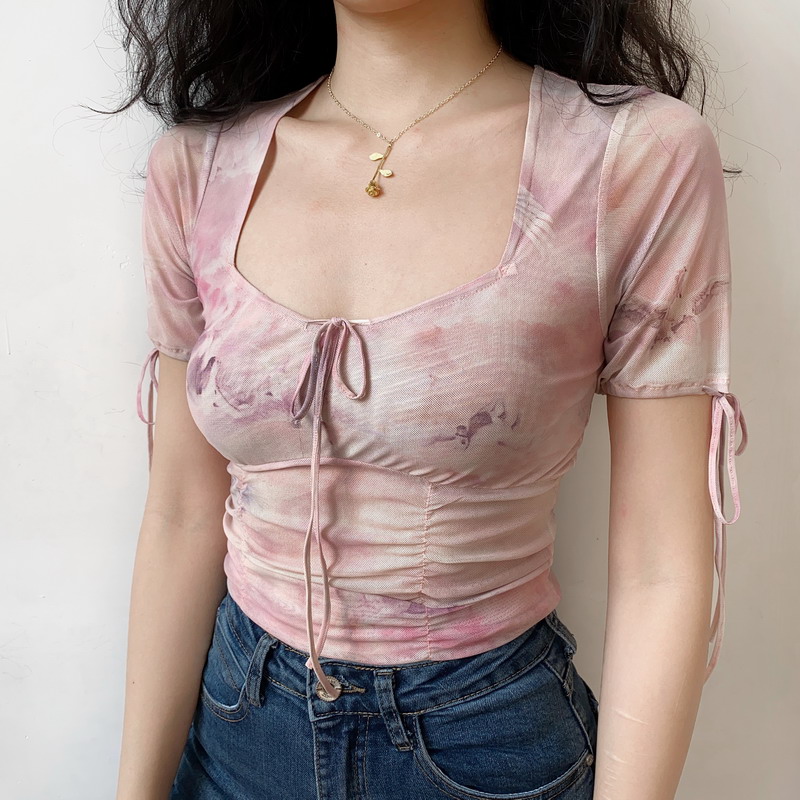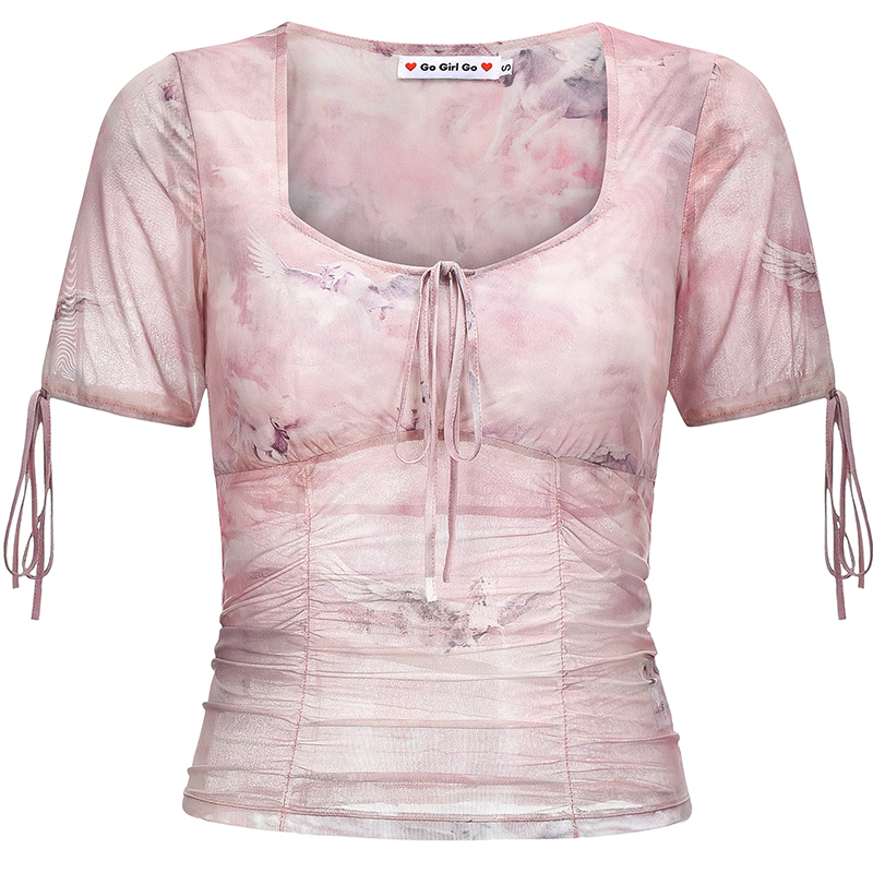 Elevate your wardrobe with our Ballet Style Dreamy Printed Mesh Sheer Bow Pleated Short Sleeve T-shirt, the ultimate Y2K fashion essential for women. This enchanting top features a delicate sheer mesh design adorned with whimsical prints, and the charming bow detail adds a touch of femininity, making it perfect for both casual outings and dressier occasions. With its flattering fit and playful pleats, this t-shirt will keep you feeling comfortable and stylish all day long. Don’t miss out on this must-have piece shop now and transform your look!