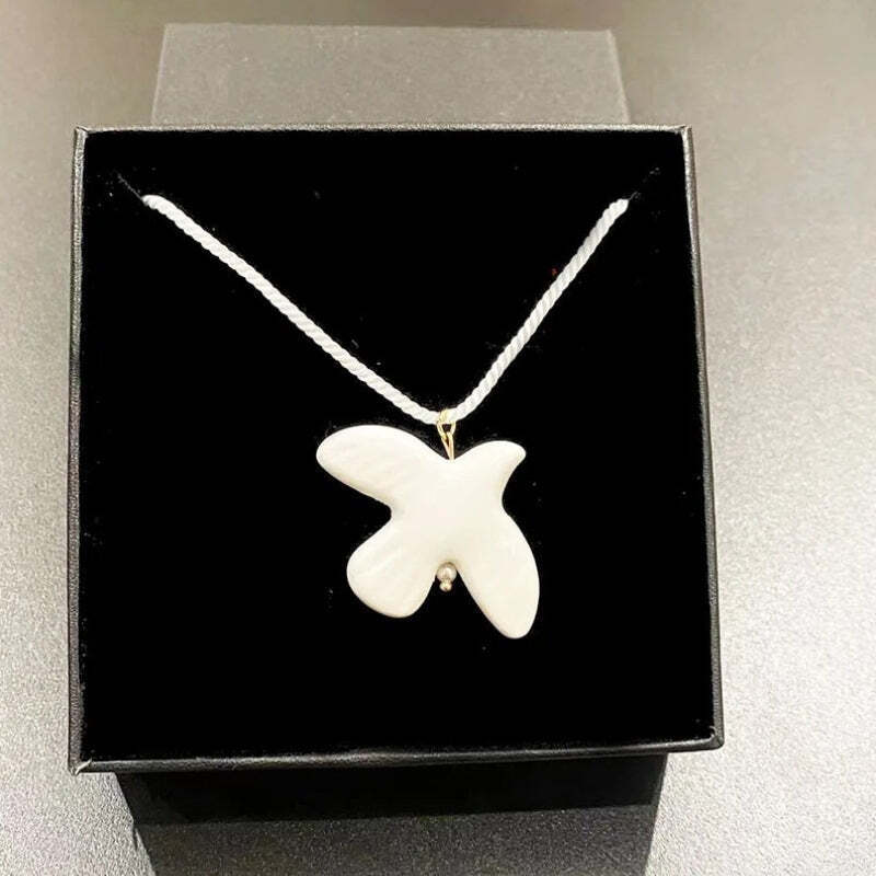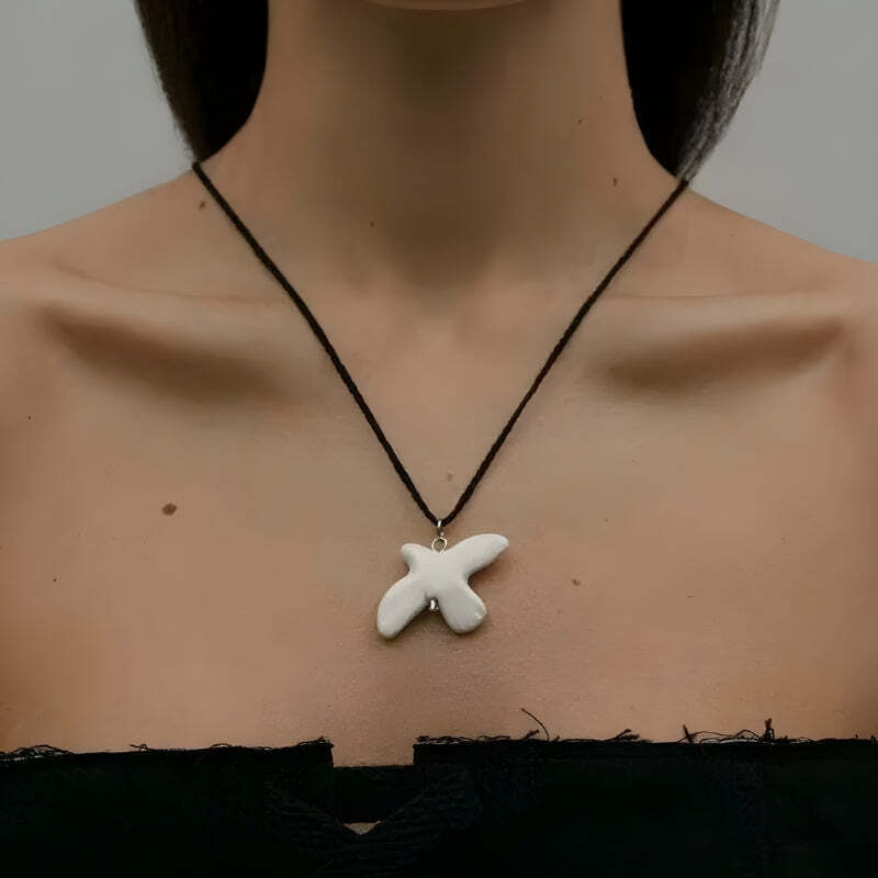 Delicate and expressive, this bird-inspired jewelry set brings a soft, sculptural touch to your look. The necklace features a minimalist ceramic bird charm suspended on a long black cord that ties into a bow for adjustable styling. Paired with matching earrings, this set blends artful elegance with everyday wearability.