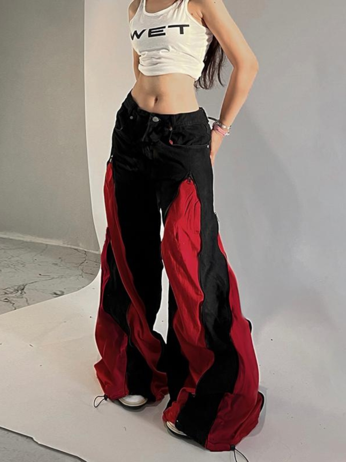 Black, Red Casual Pants Women Low Wailoose Fit Dance Stree – Streetwear Fashion Women