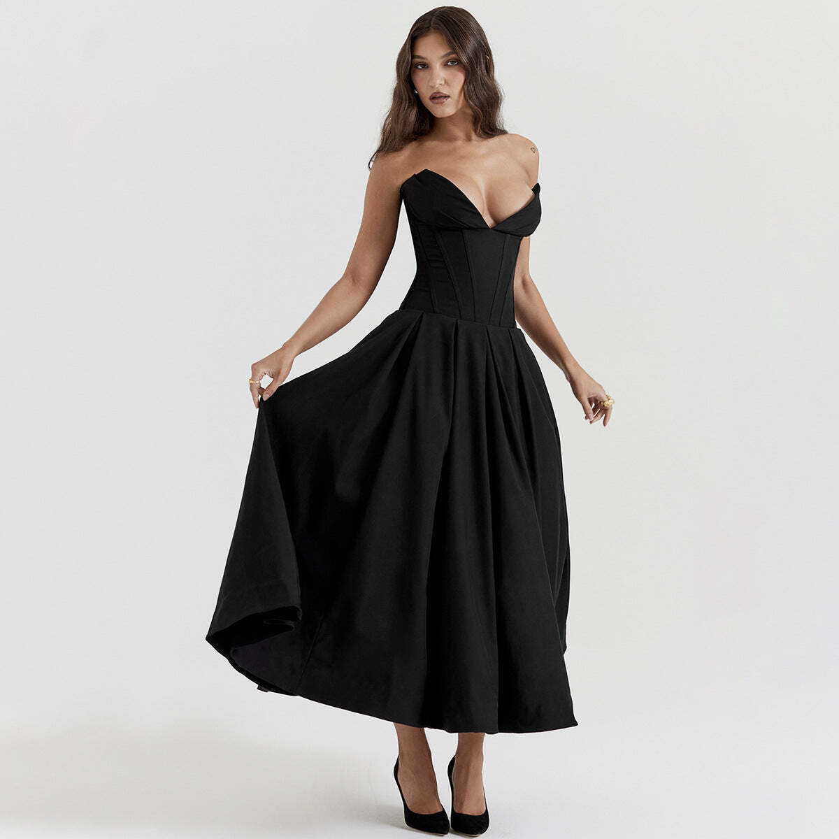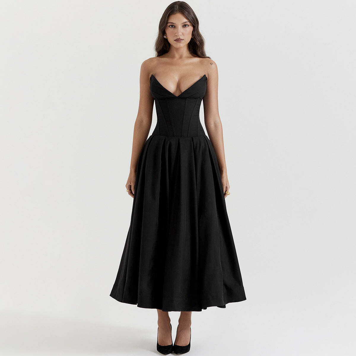 Black Plunge Corset Midi Dress – Black Corset Halloween Costume