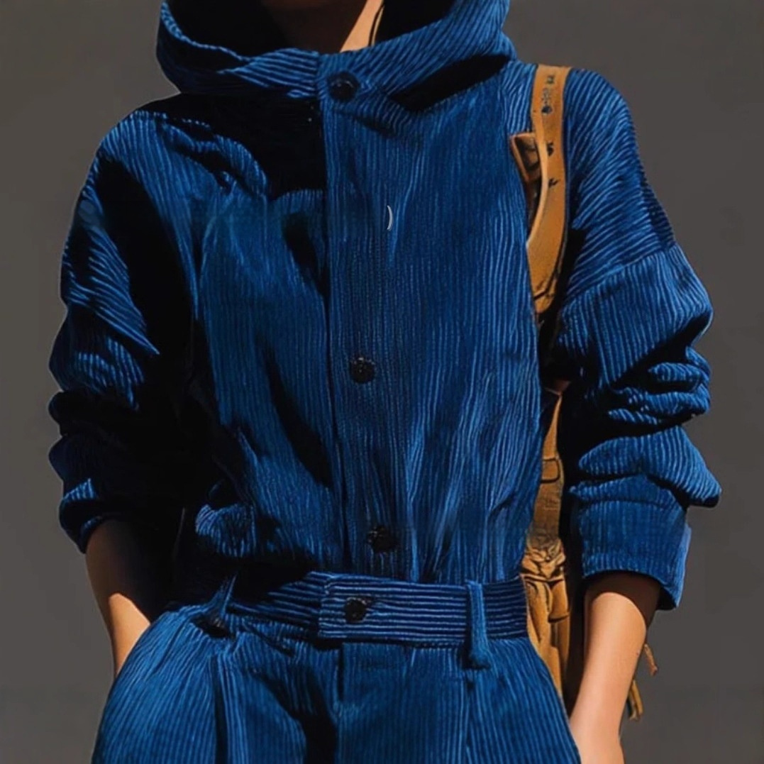 Be the first to review “Blue Corduroy Hooded Top And Wide-leg Pants Set” Cancel reply