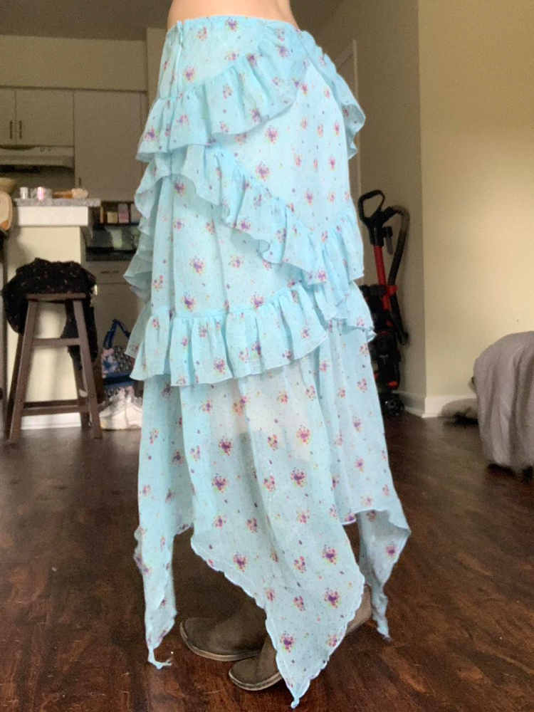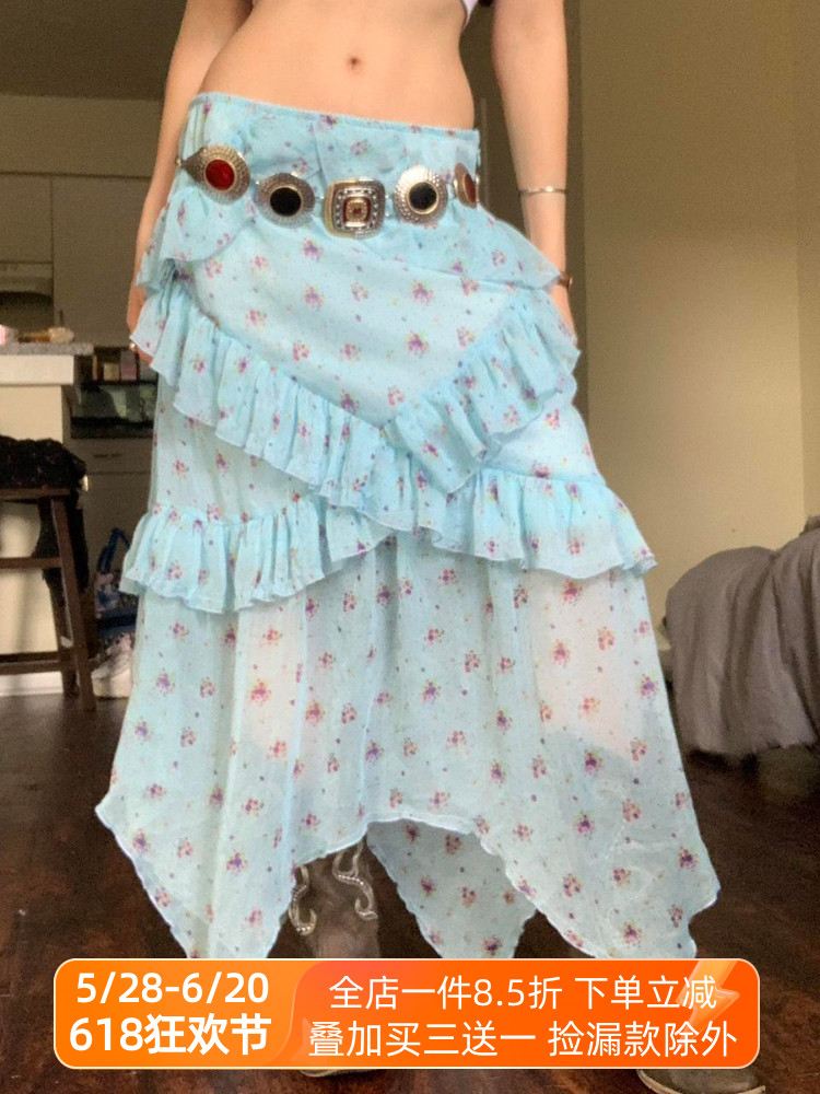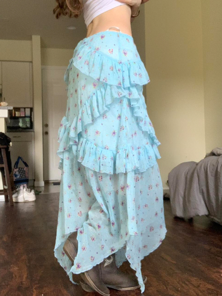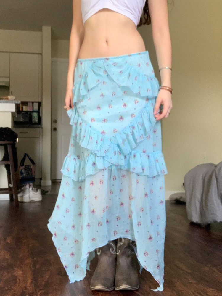 Blue Floral Ruffled Hem Midi Skirt Women Straight Draped Tulle, Summer, Y2K High-quality product featuring skirt outfits, summer fits, coquette outfit and more. Modern design that fits the latest trends. Premium materials ensure durability and comfort. Order now for special offers! Product designed with attention to every detail. Suitable for all occasions and personal styles.