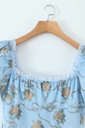 Floral Blue High-Waisted Slimming Dress For Women