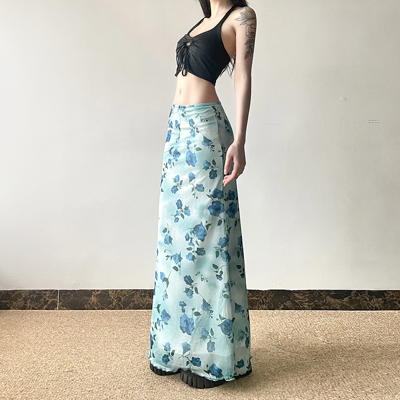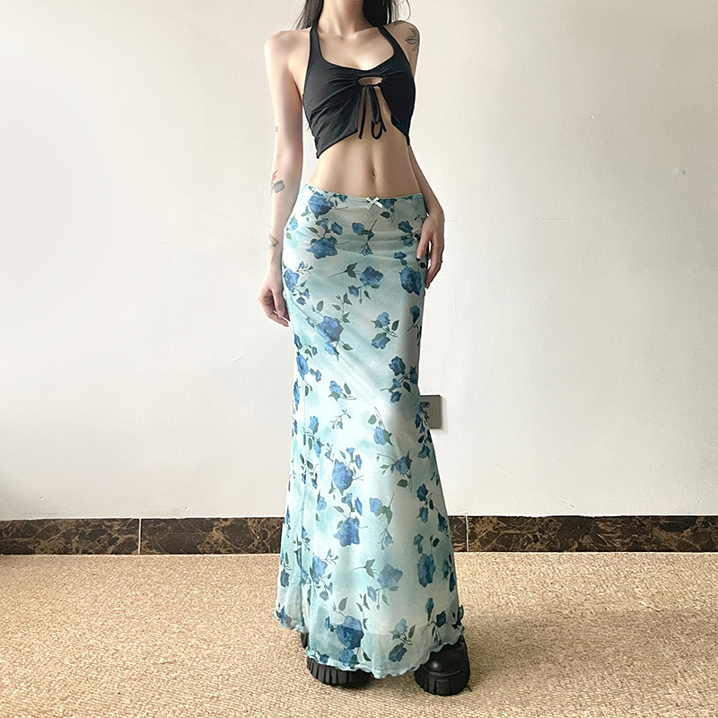 Blue Rose Printed Tulle Vintage Midi Skirt Long Skirt Spring Floral, Y2K High-quality product featuring spring outfit, spring outfits, skirt outfits and more. Modern design that fits the latest trends. Premium materials ensure durability and comfort. Order now for special offers! Product designed with attention to every detail. Suitable for all occasions and personal styles.