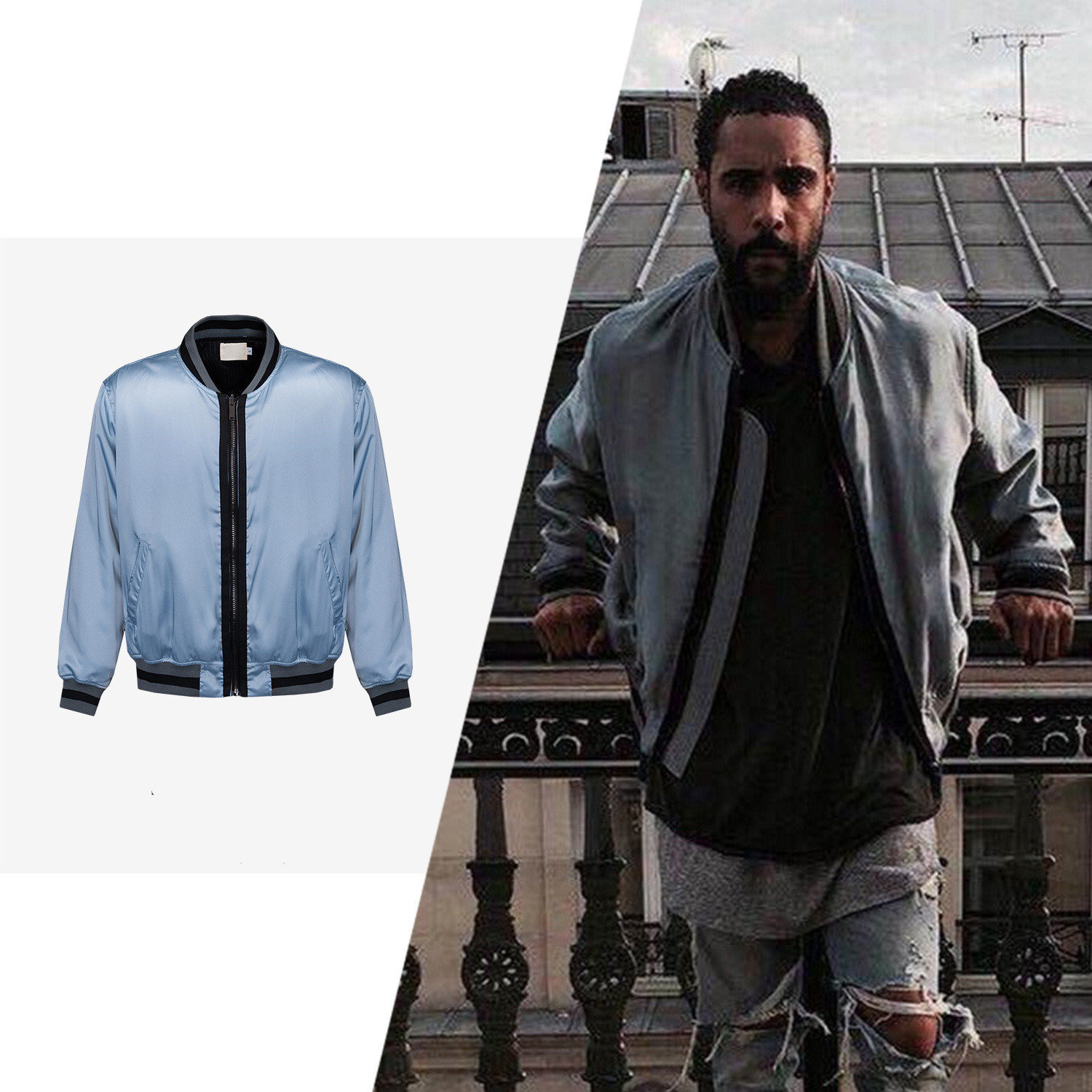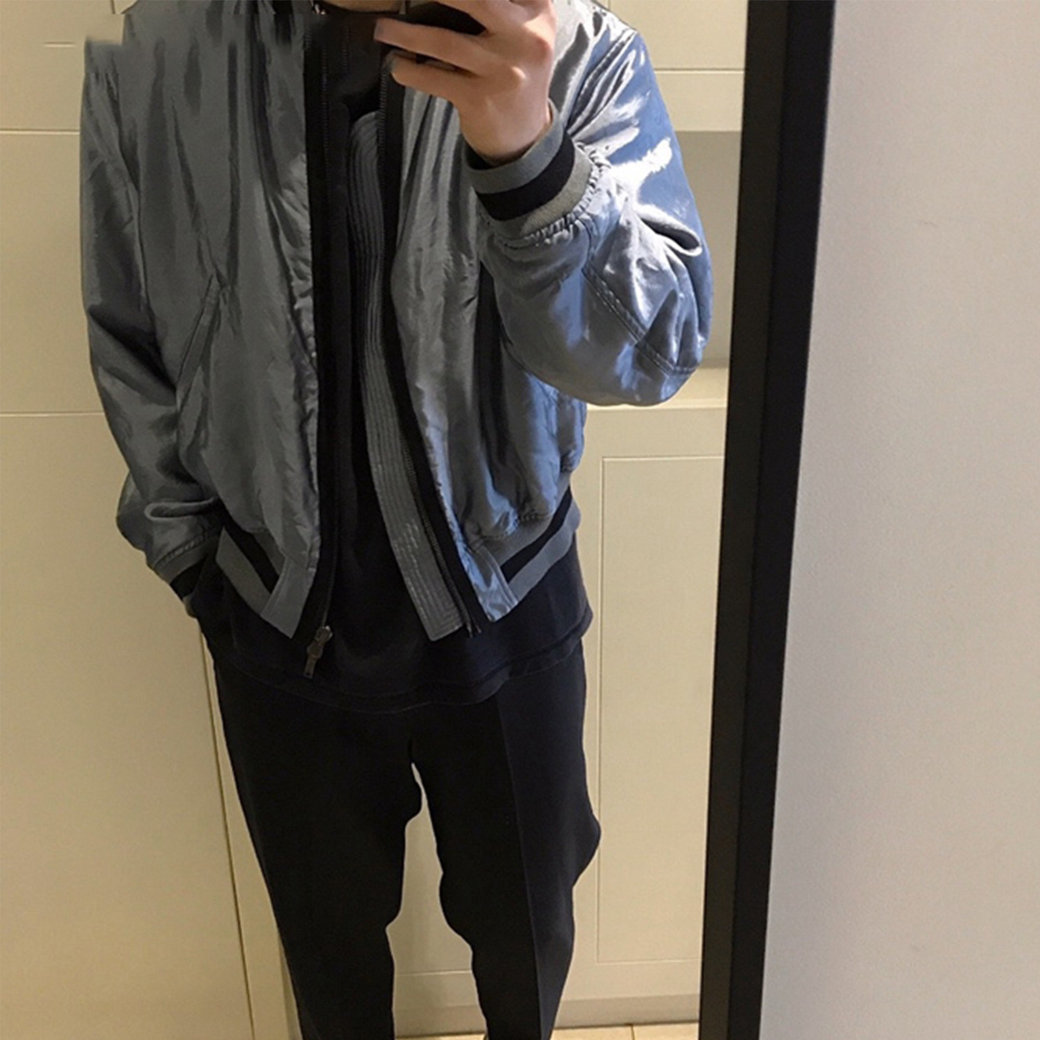 Be the first to review “Blue Silk Cotton Bomber Jacket” Cancel reply