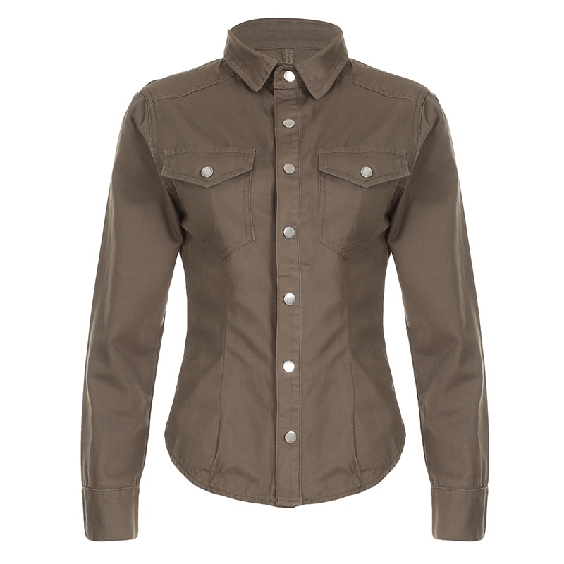 Elevate your wardrobe with our Brown Vintage Lapel Single-Breasted Long Sleeve Shirt for Women. This slim fit top perfectly embodies versatile Y2K style, making it an ideal choice for layering or as standout outerwear. Crafted with attention to detail, its unique lapel design and rich brown hue add a touch of retro charm to any outfit. Don’t miss out on this essential piece add it to your cart today and redefine your style!