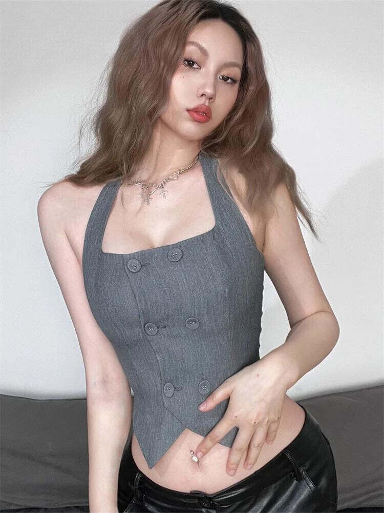 Buttoned Crop Halter Top: Your Ultimate Outfit Inspo for Stylish Looks