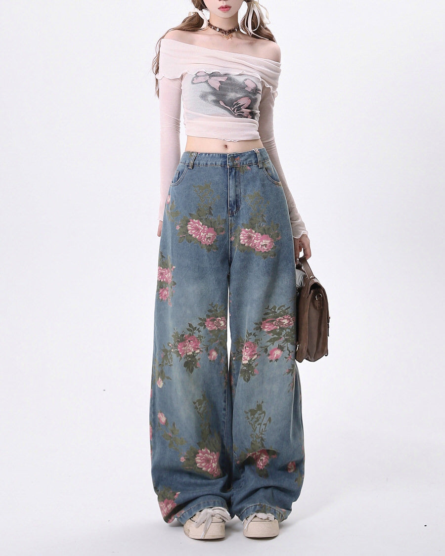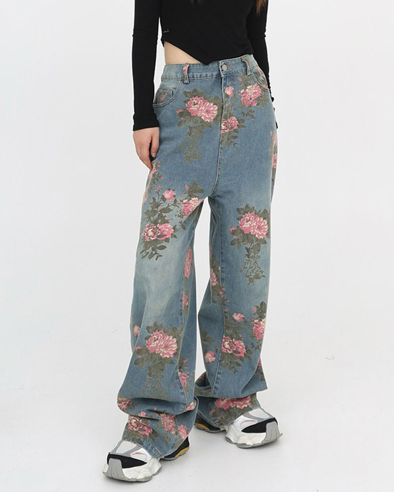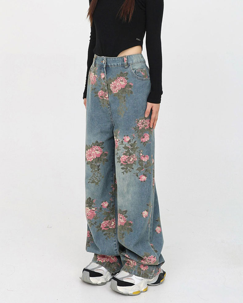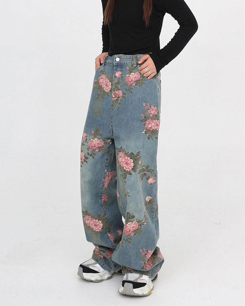 Casual Day Outfits, Easy Outfits Cottagecore Rose Print Wide Jeans High-quality product featuring cute everyday outfits, casual outfits winter, casual summer outfits and more. Modern design that fits the latest trends. Premium materials ensure durability and comfort. Order now for special offers! Product designed with attention to every detail. Suitable for all occasions and personal styles.