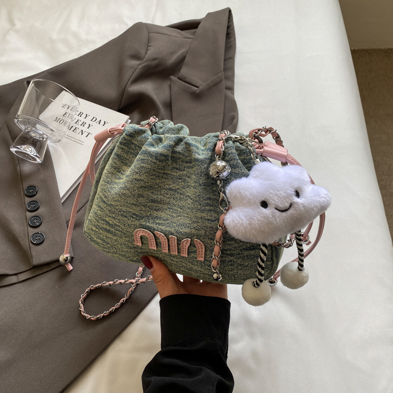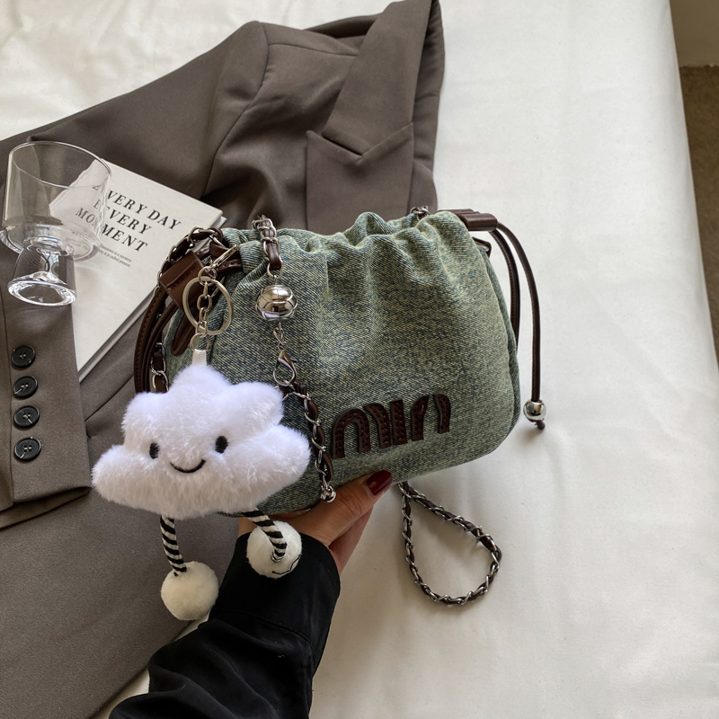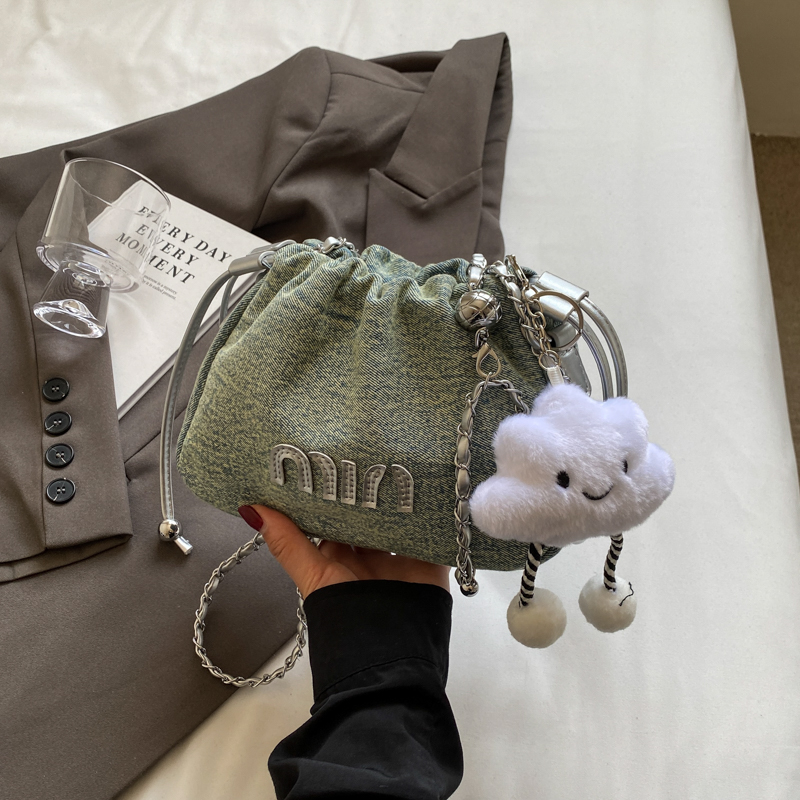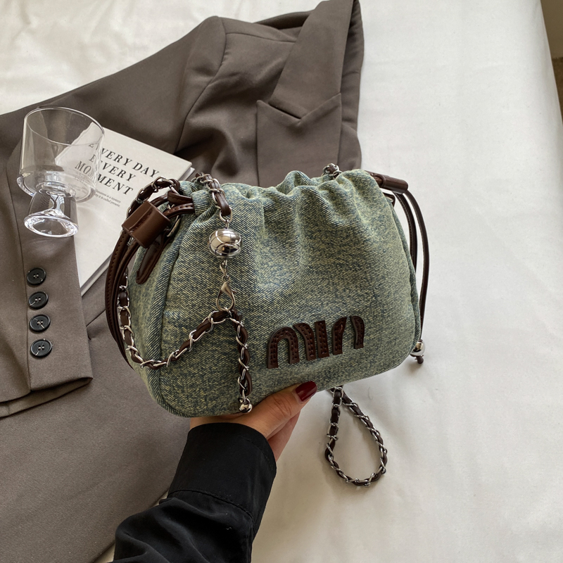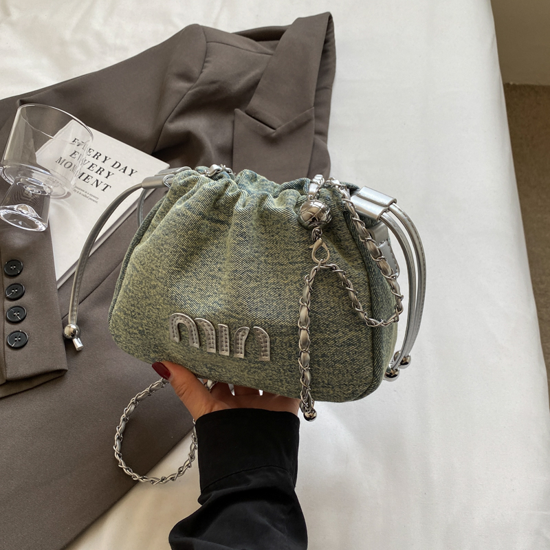 Casual Denim Bucket Bag Women Drawstring Shoulder Bag, Summer – Casual Summer Outfits
