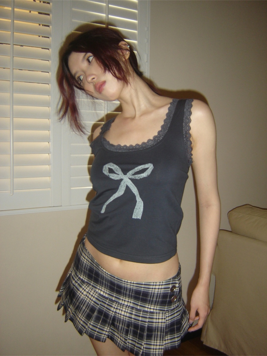 Charcoal Gray Lace Splicing Bow Slim Fit Camisole Top Ummer Cute – Pretty Outfits