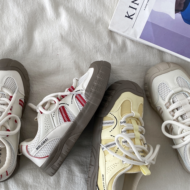 Yellow Thick Soled Retro Sneakers Women Non Repetitive Casual Sports Sh – Y2k Outfits