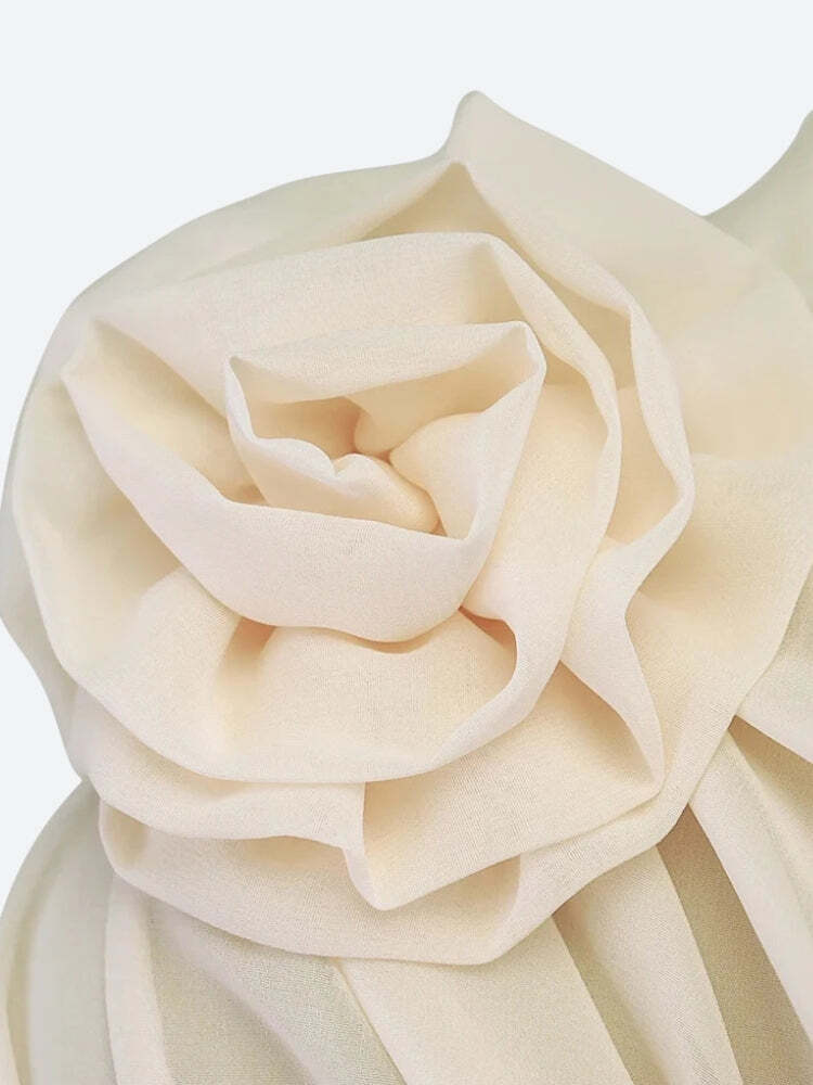 Soft draping and an elegant rose detail make this one shoulder top a chic pick for dressy nights or classy day looks. The flowy chiffon adds movement and a polished finish.
