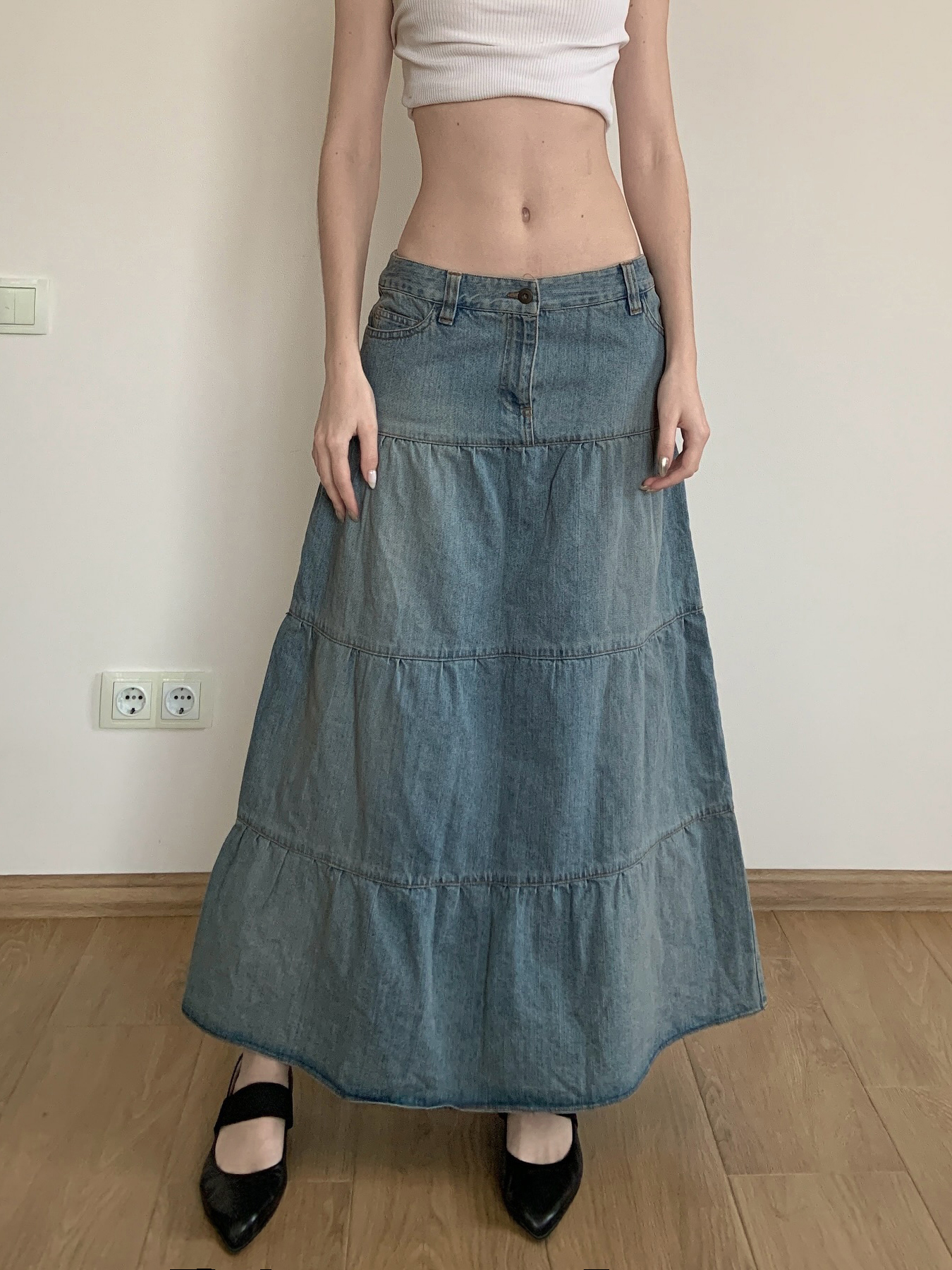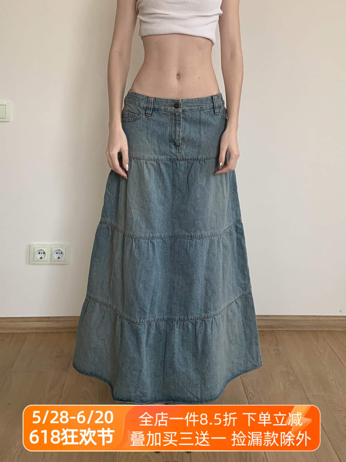 Chilling Blue Vintage Washed Denim Long Skirt Women A Line Midi Skirt, Y2K High-quality product featuring skirt outfits, fall outfits women, 90s fashion and more. Modern design that fits the latest trends. Premium materials ensure durability and comfort. Order now for special offers! Product designed with attention to every detail. Suitable for all occasions and personal styles.