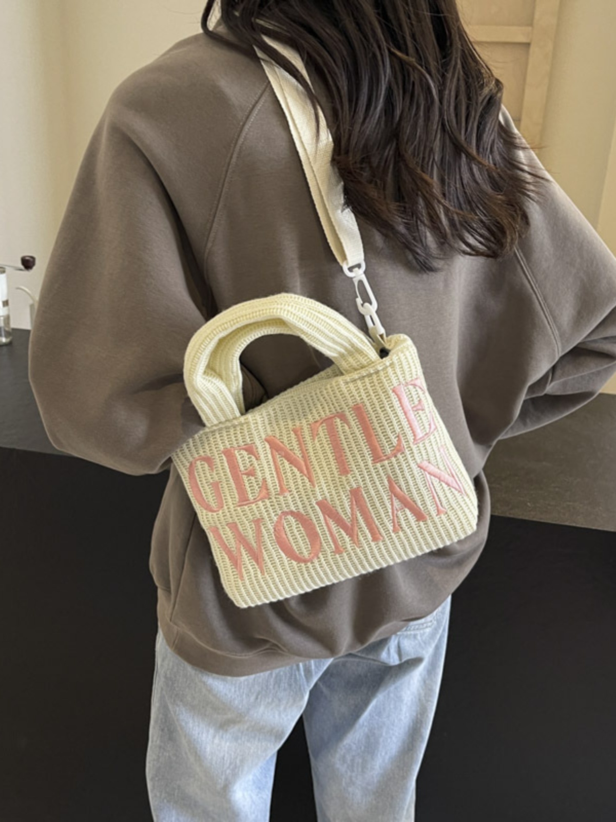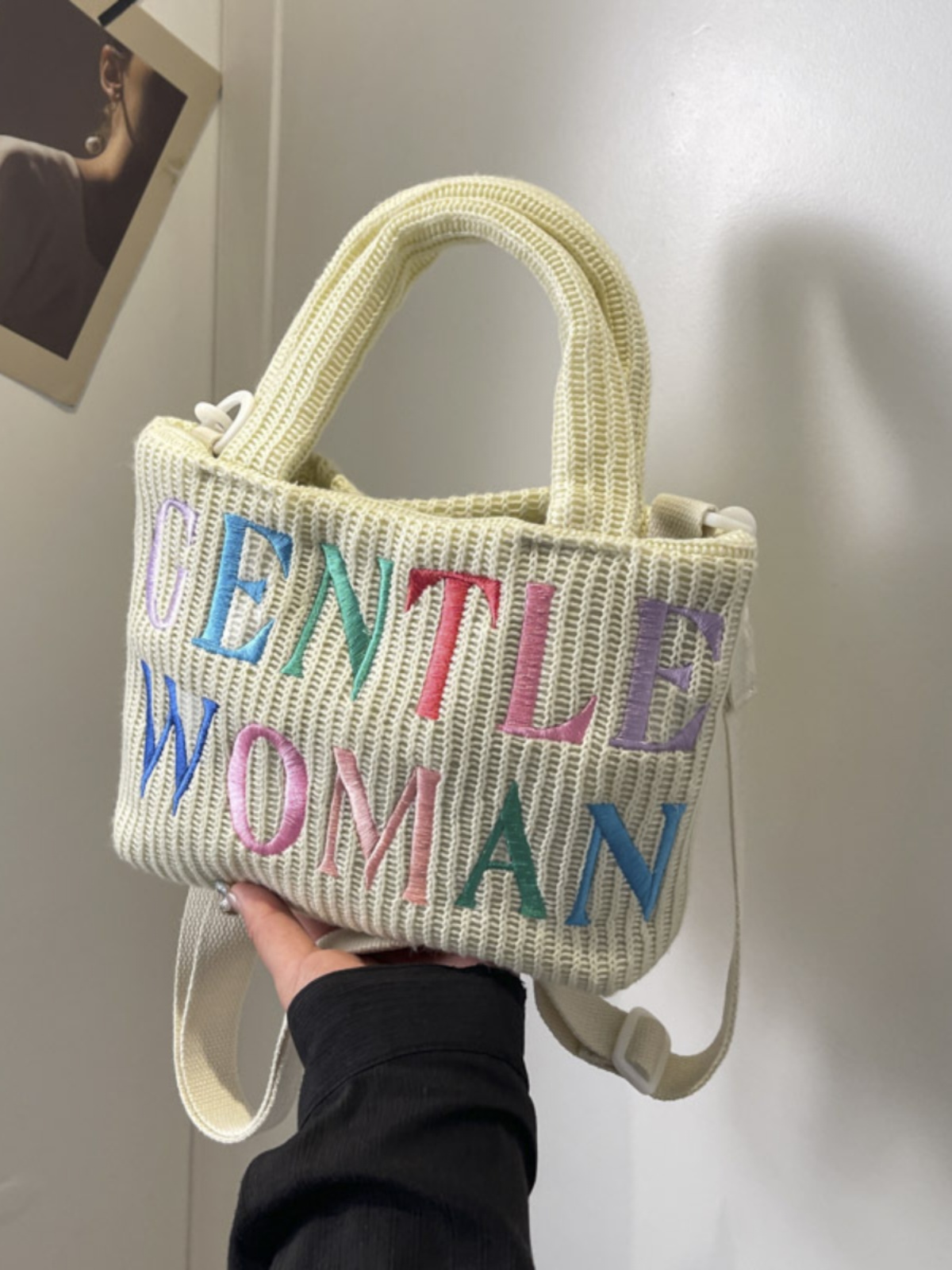 Elevate your everyday style with our Color-Block Casual Knitted Tote Shoulder Bag, featuring an elegant embroidered ‘Gentle Woman’ motif. This trendy 2025 accessory combines a chic design with practical functionality, making it perfect for daily errands or brunch with friends. With its spacious interior and comfortable shoulder straps, this versatile tote is a must-have addition to your wardrobe. Don’t miss out on this statement piece add it to your cart today!