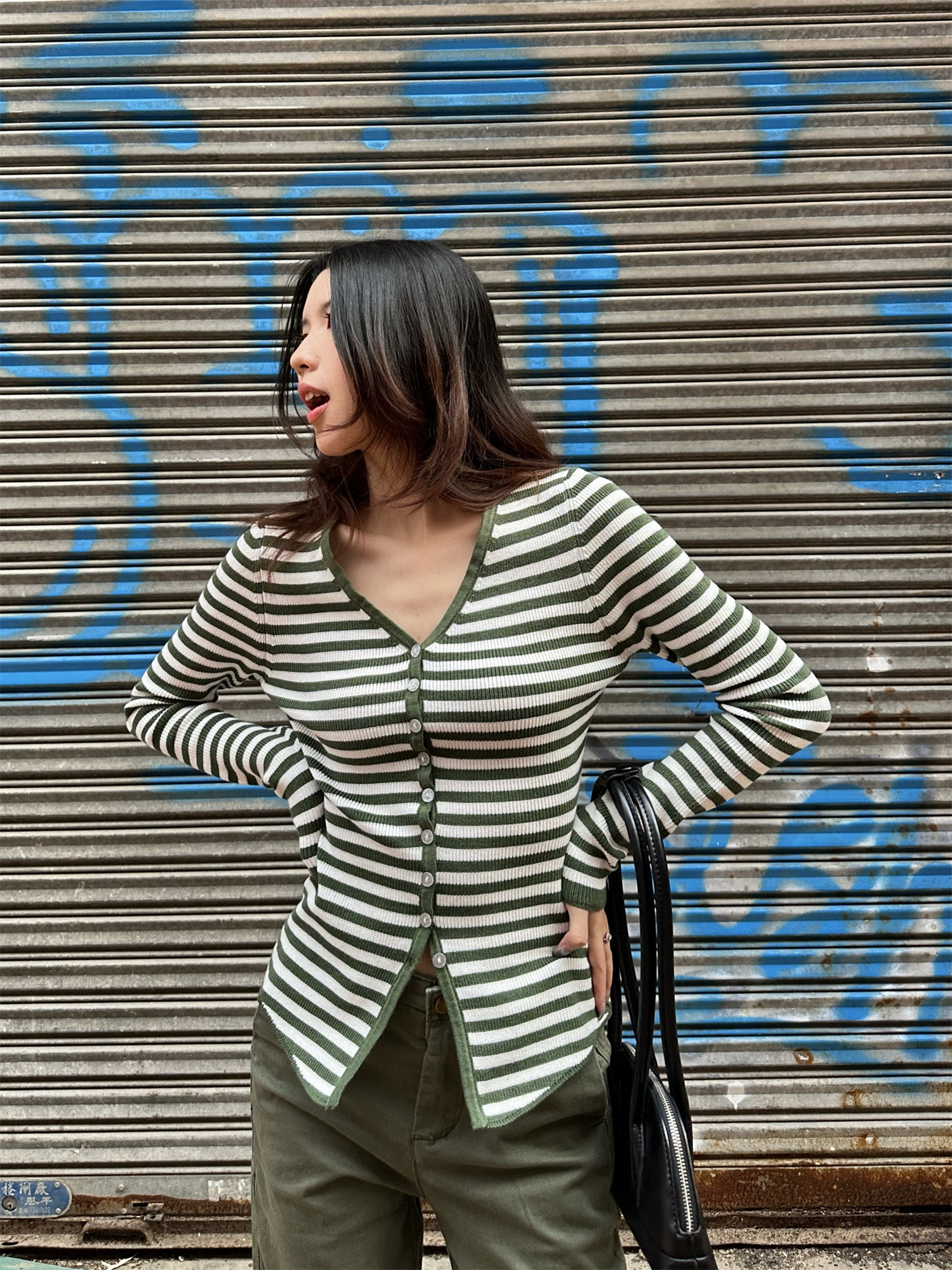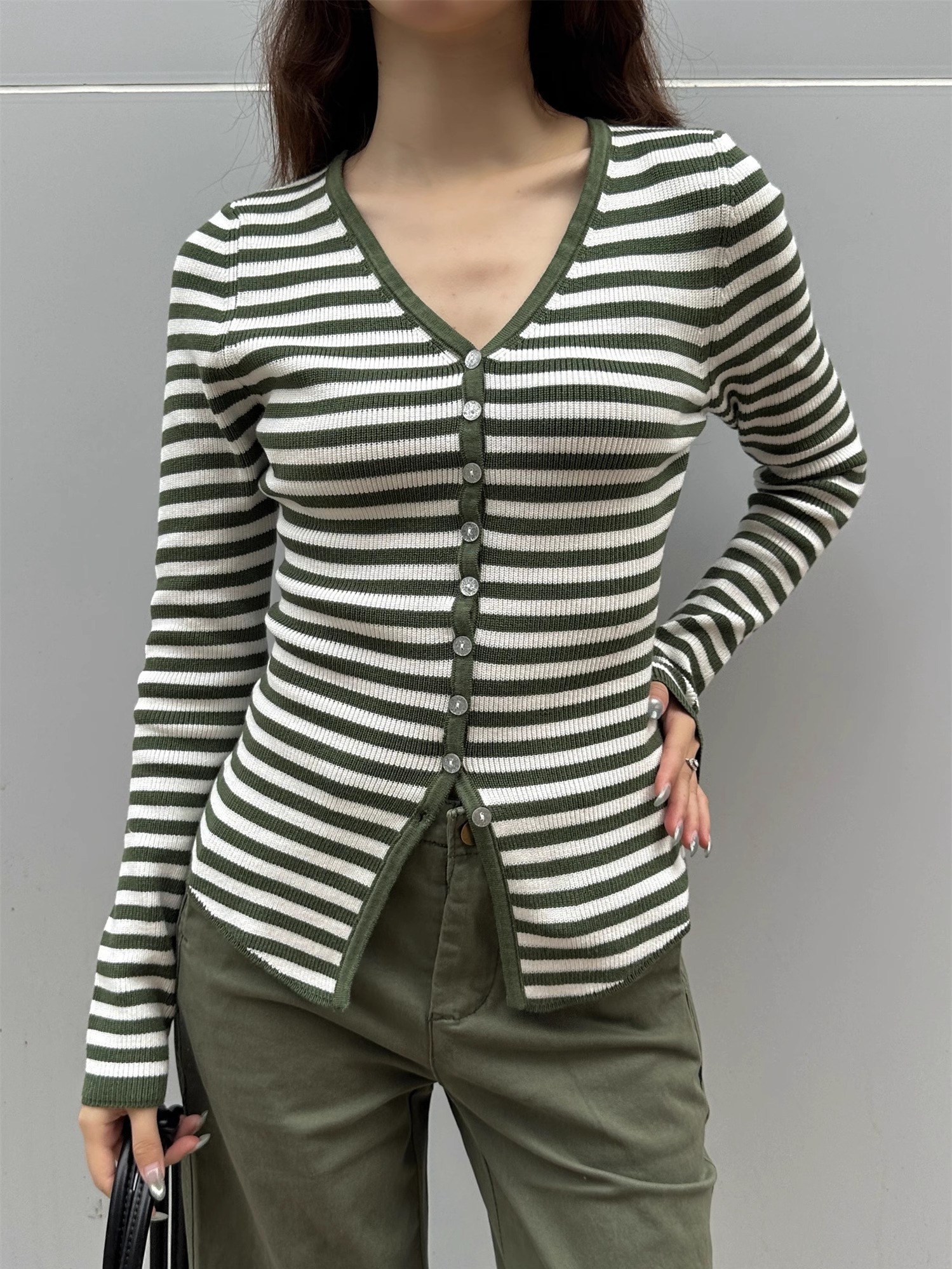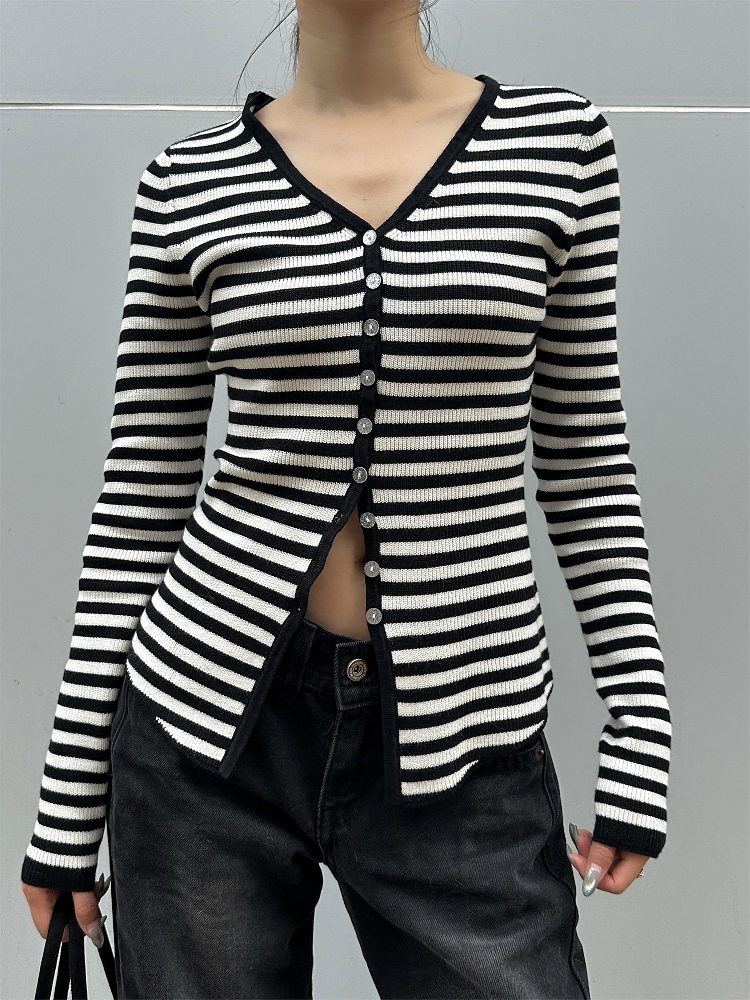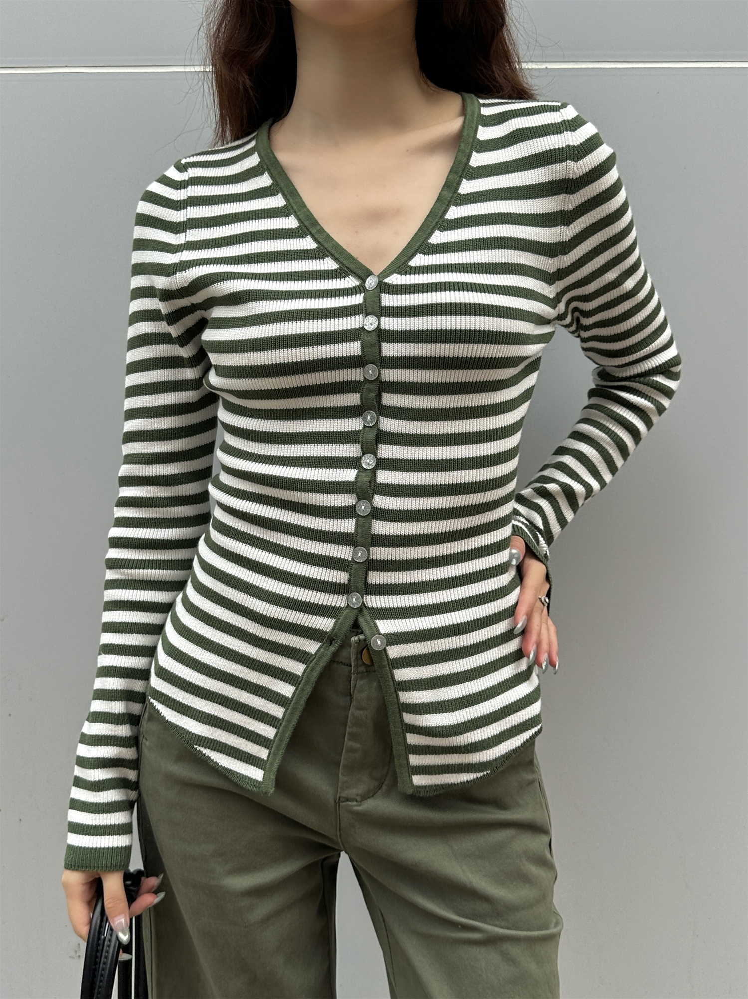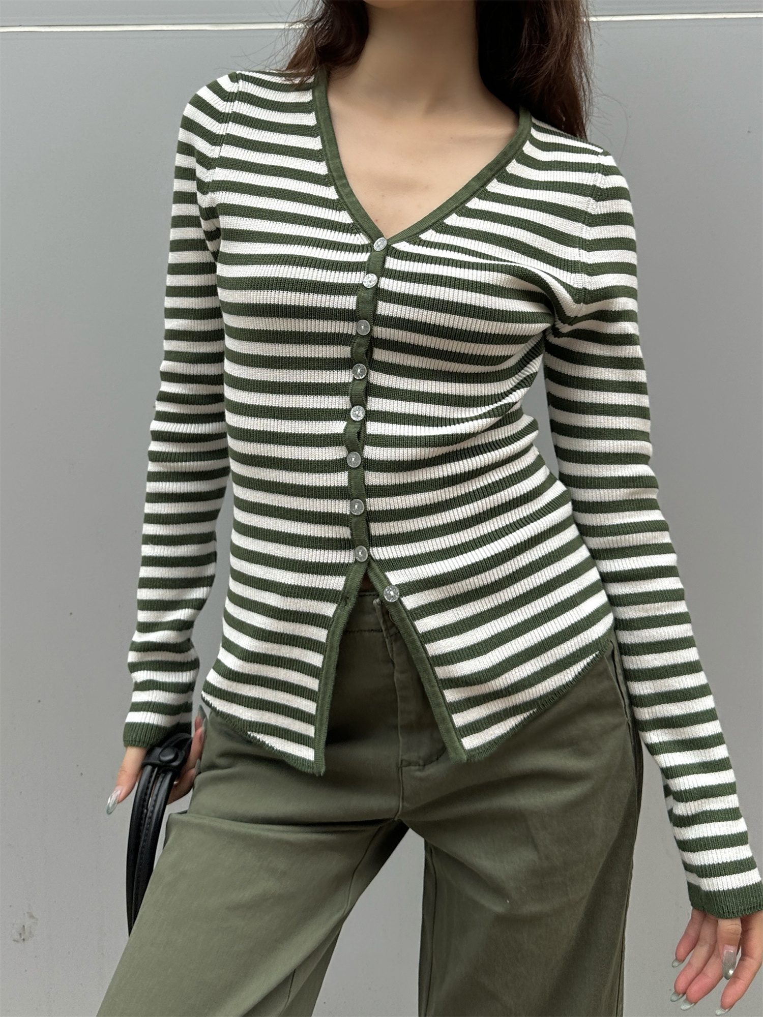 Striped Textured Button V- Neck High Elastic Slim Fit Knitted Cardigan Women High-quality product featuring outfit inspo, winter fits, fall outfits women and more. Modern design that fits the latest trends. Premium materials ensure durability and comfort. Order now for special offers! Product designed with attention to every detail. Suitable for all occasions and personal styles.